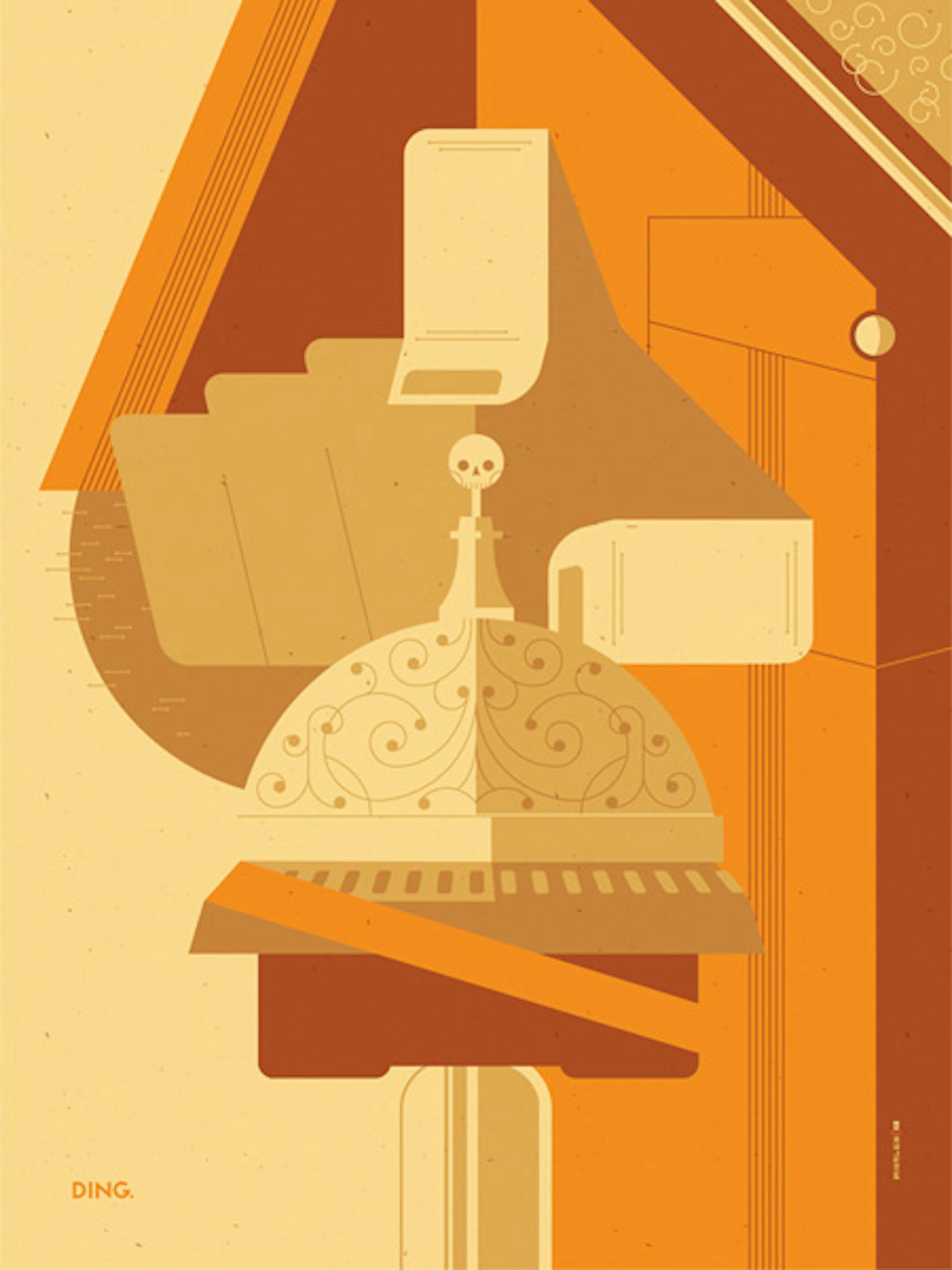 "On a quick surface scan, I knew that bell was so iconic," said Whalen, referring to Hector's only form of communication, a bicycle bell attached to his wheelchair. "I didn't think the character lent himself to someone hanging him on their wall because he was such a weird-looking guy, so I wanted to do a bold take on the bell."