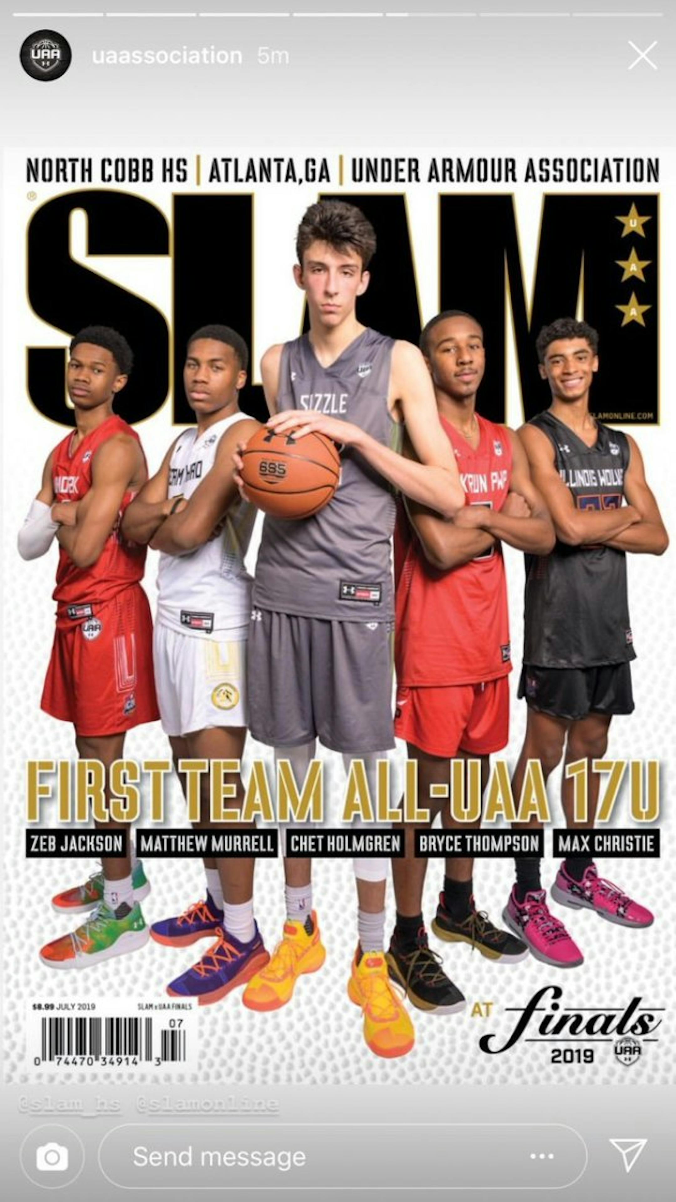 Teaming with Minnehaha Academy's five-star senior guard Jalen Suggs for Team Sizzle, Holmgren played well enough to be featured with Suggs on Slam Magazine covers created by the online site to honor the top players in the UAA circuit this summer.