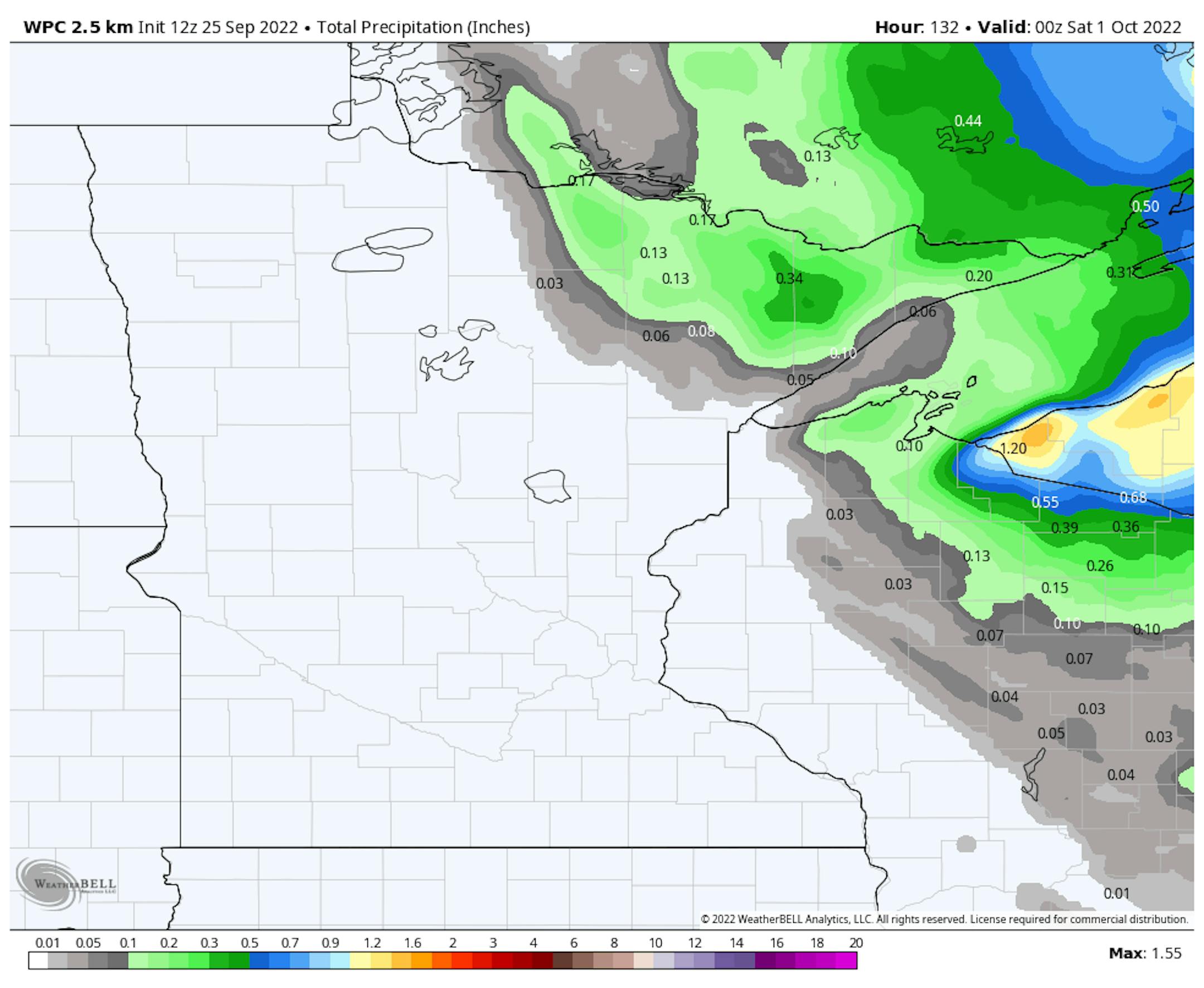And it is going to be a mainly dry week across the state. The forecast rain up north you see is falling Sunday and Sunday Night, otherwise, through Friday evening there really isn't any precipitation expected across the state. As a frontal boundary moves in later Friday into Saturday a few showers might be possible Friday Night, but right now they look scattered and light in nature - and mainly to the west of the metro.