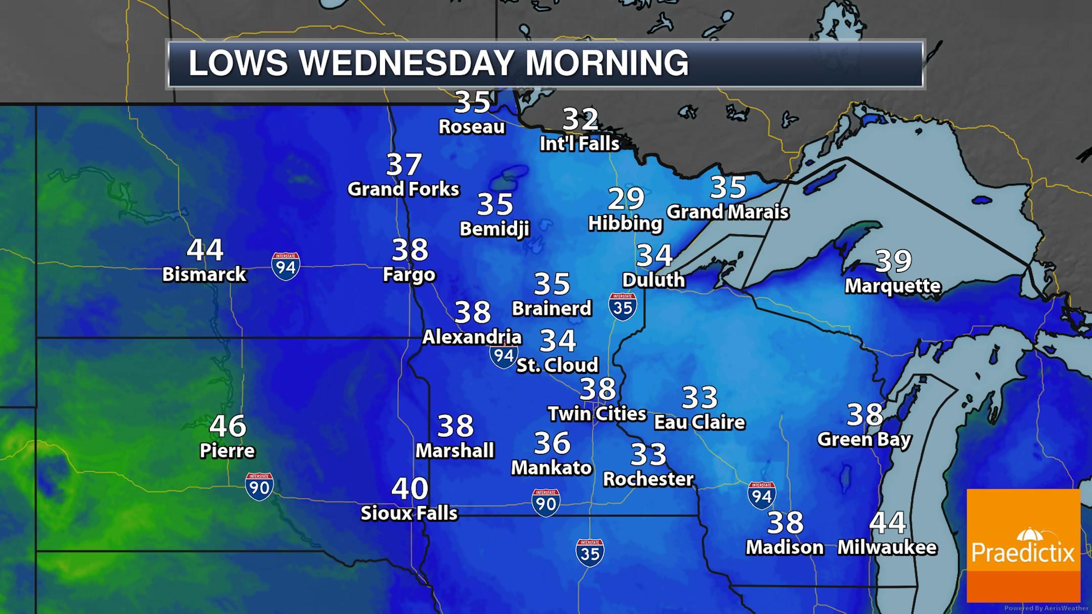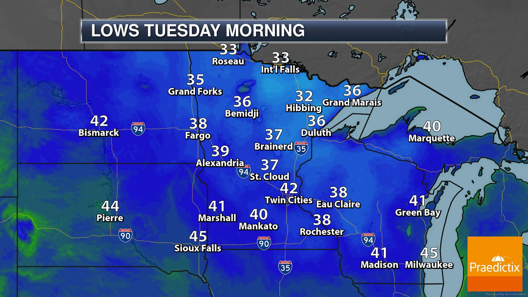 Might we finally start to say "goodbye" to those dang mosquitoes? The potential exists into Tuesday and Wednesday mornings of a widespread frost - and even freeze conditions - across a good section of the state. We could even be approaching potential frost conditions here in the metro Wednesday morning.