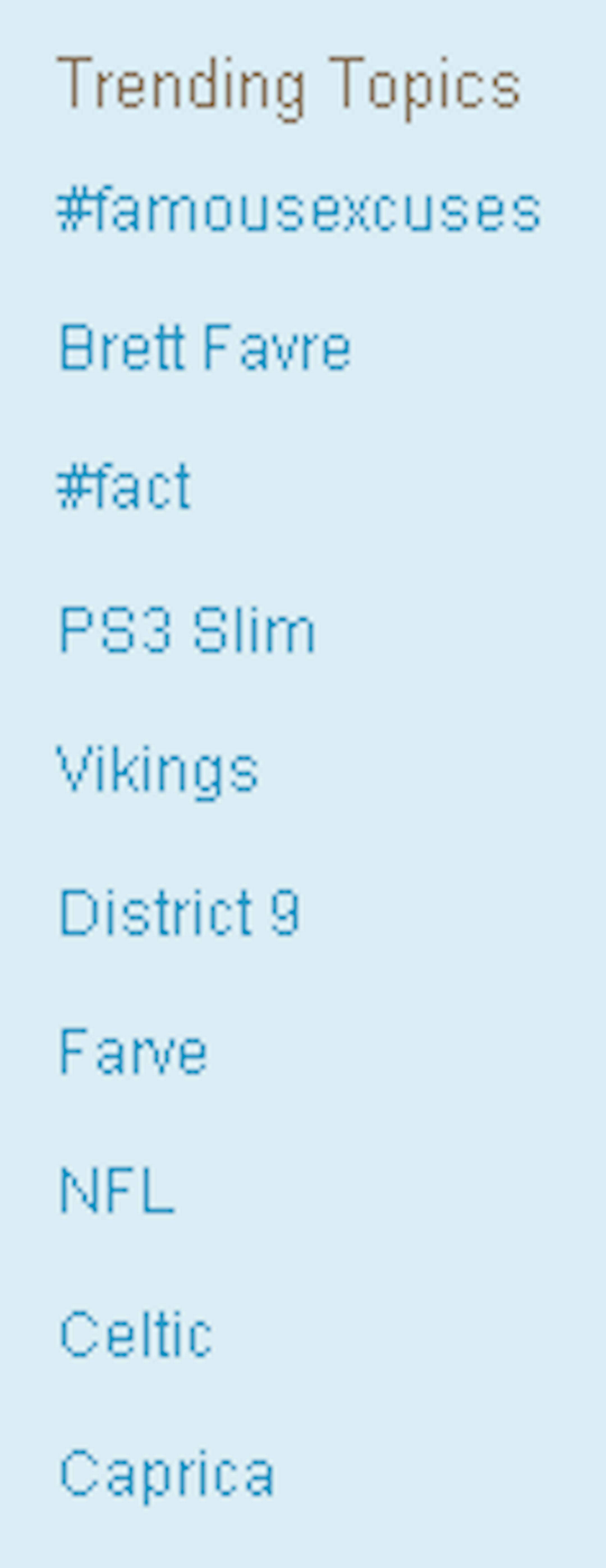 If you are also willing to believe that #famousexcuses is also Favre-related, well, then we have a bona fide rout.