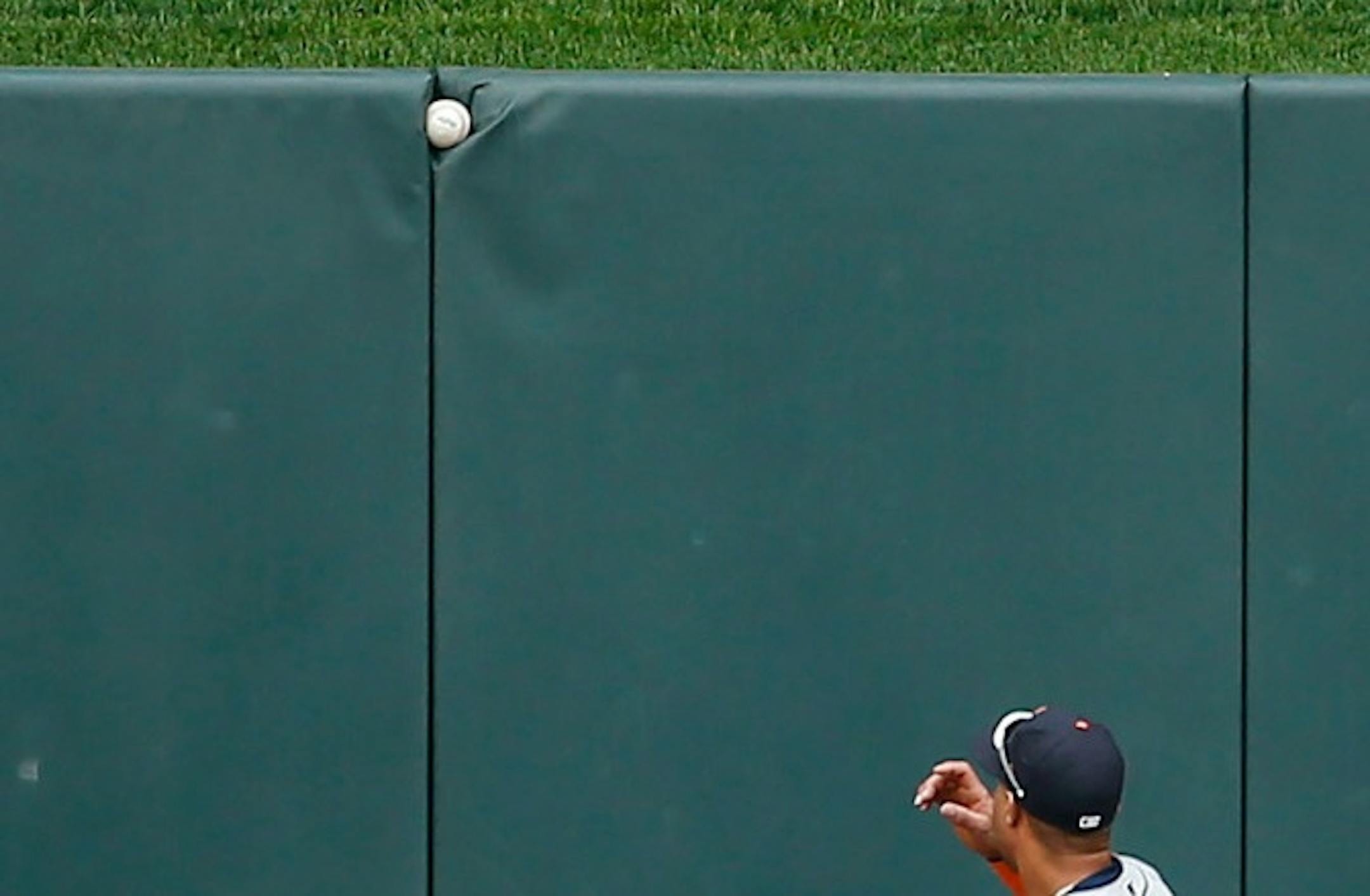 This is the play that made you wonder if Wednesday wasn't going to be filled with good fortune for the Twins. Brian Dozier led off in the bottom of the first with a long fly ball to center field ... that got stuck in the padding inches from clearing the wall.