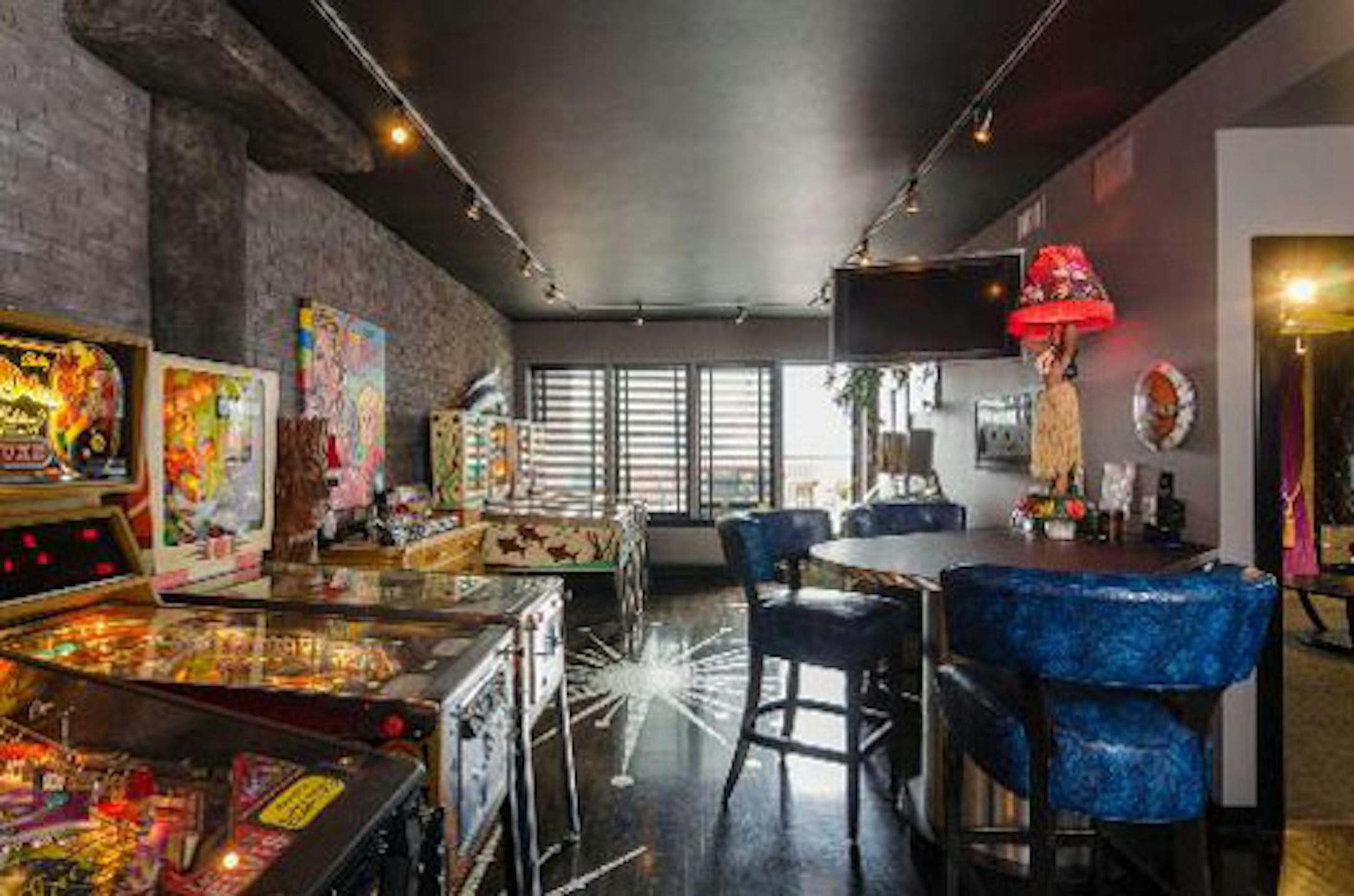 OF COURSE he has pinball machines. But which ones? Well, one backplate is easy to identify.