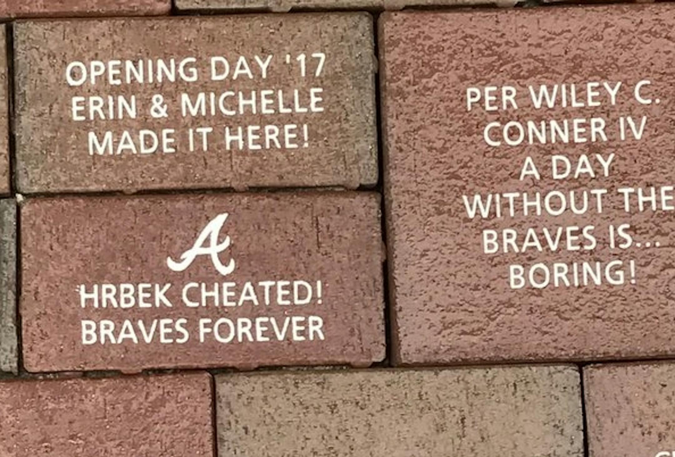 At the new Atlanta ballpark, they sell "Legacy Bricks" similar to the ones at U.S. Bank Stadium. And it seems one Braves fan with a long memory used his or her money wisely by purchasing a brick proclaiming, "Hrbek cheated! Braves forever" on it as a tribute to the Twins first baseman and his manhandling of Ron Gant in the 1991 World Series.