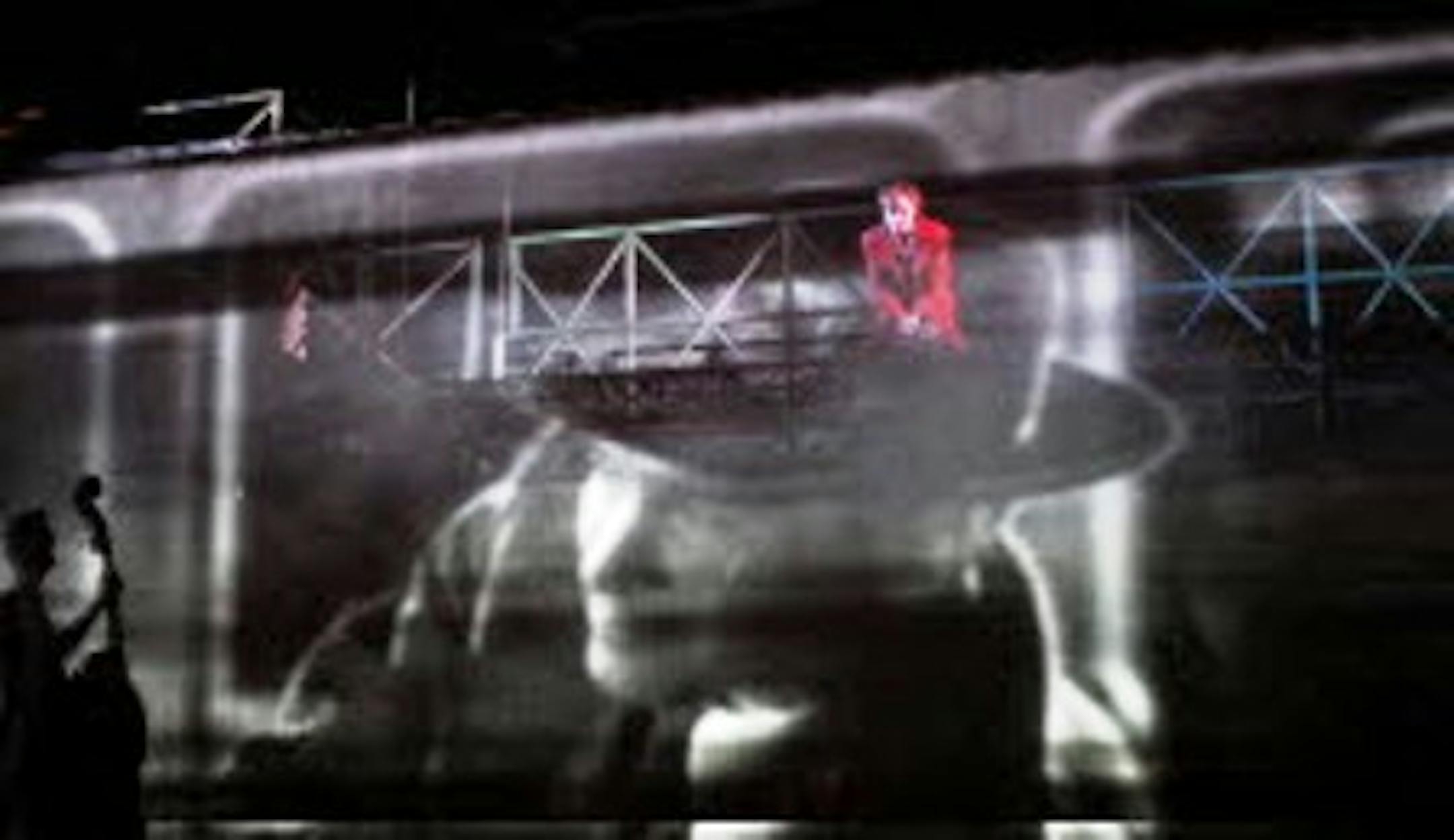 Hannah Yelland, above, as Laura and Tristan Sturrock as Alec on the screen in the play " Brief Encounter" at St. Ann's Warehouse in New York City on December 2, 2009. (Photo by Sara Krulwich/The New York Times)