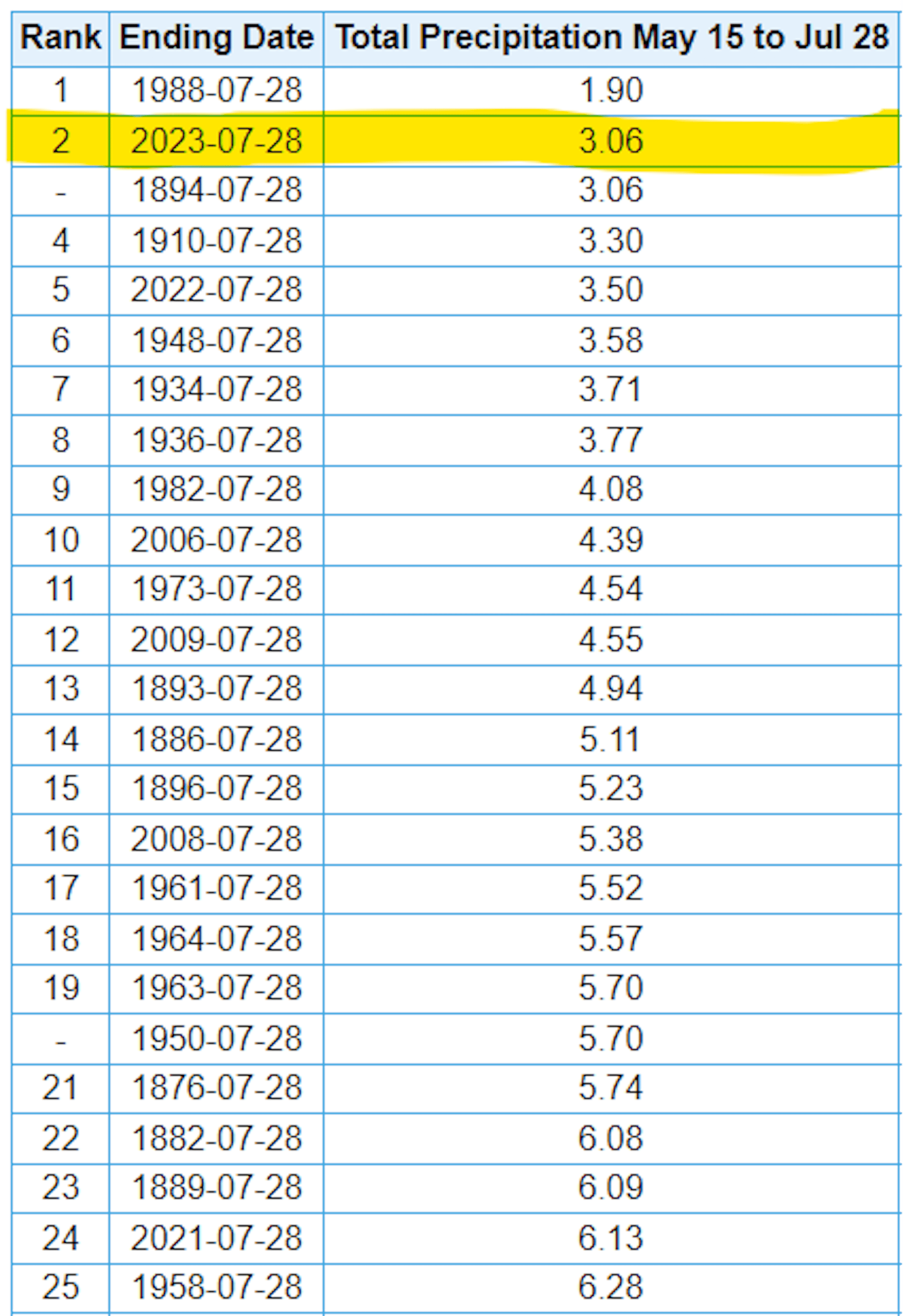 2nd Driest May 15th Through July 27th on Record