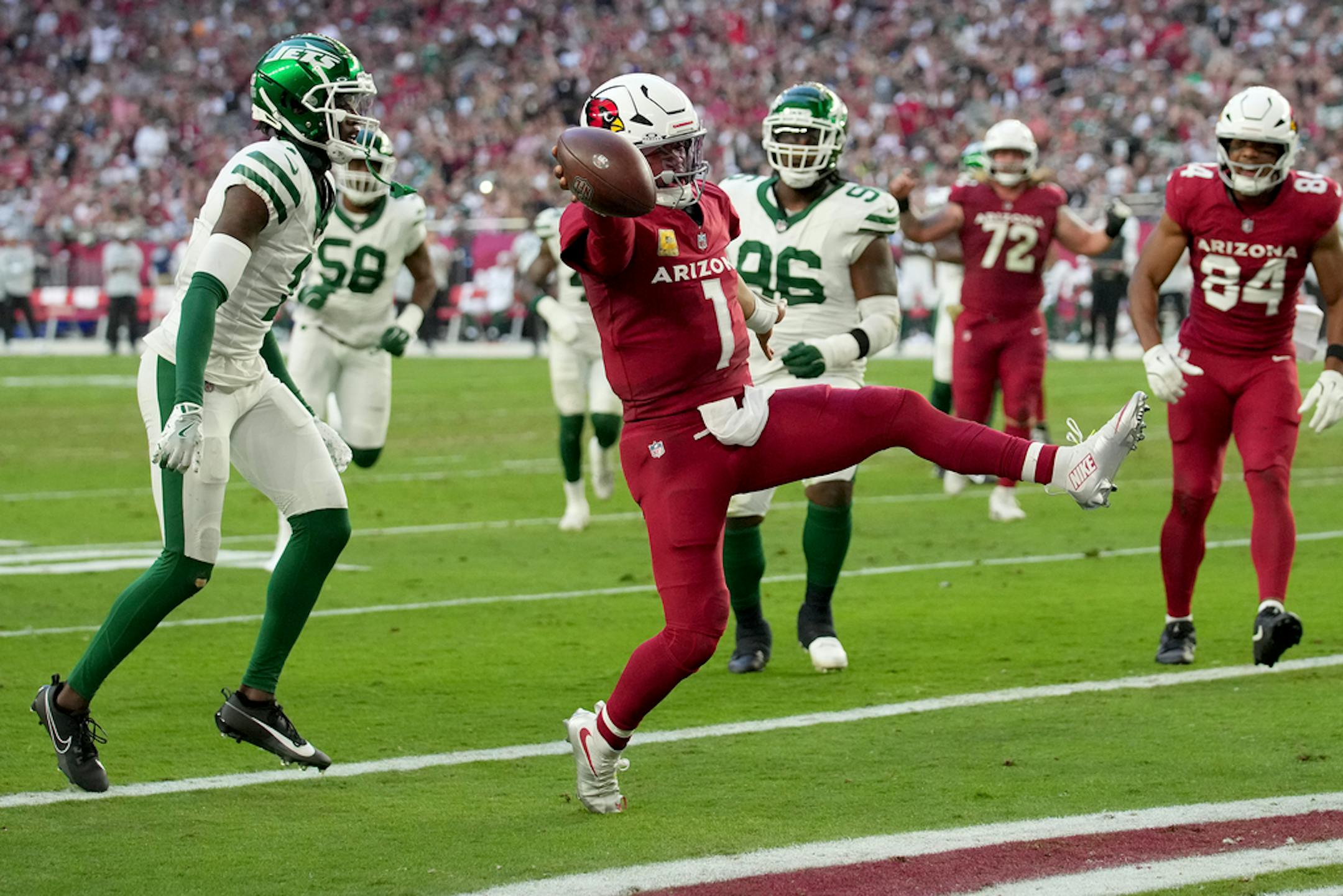 Arizona won its fourth straight game by racing to a big lead and easily handling the New York Jets in a 31-6 victory Sunday. Murray threw for 266 yards and a touchdown and also ran for two scores in another stellar performance, picking apart a Jets defense that was ranked No. 2 against the pass this season.