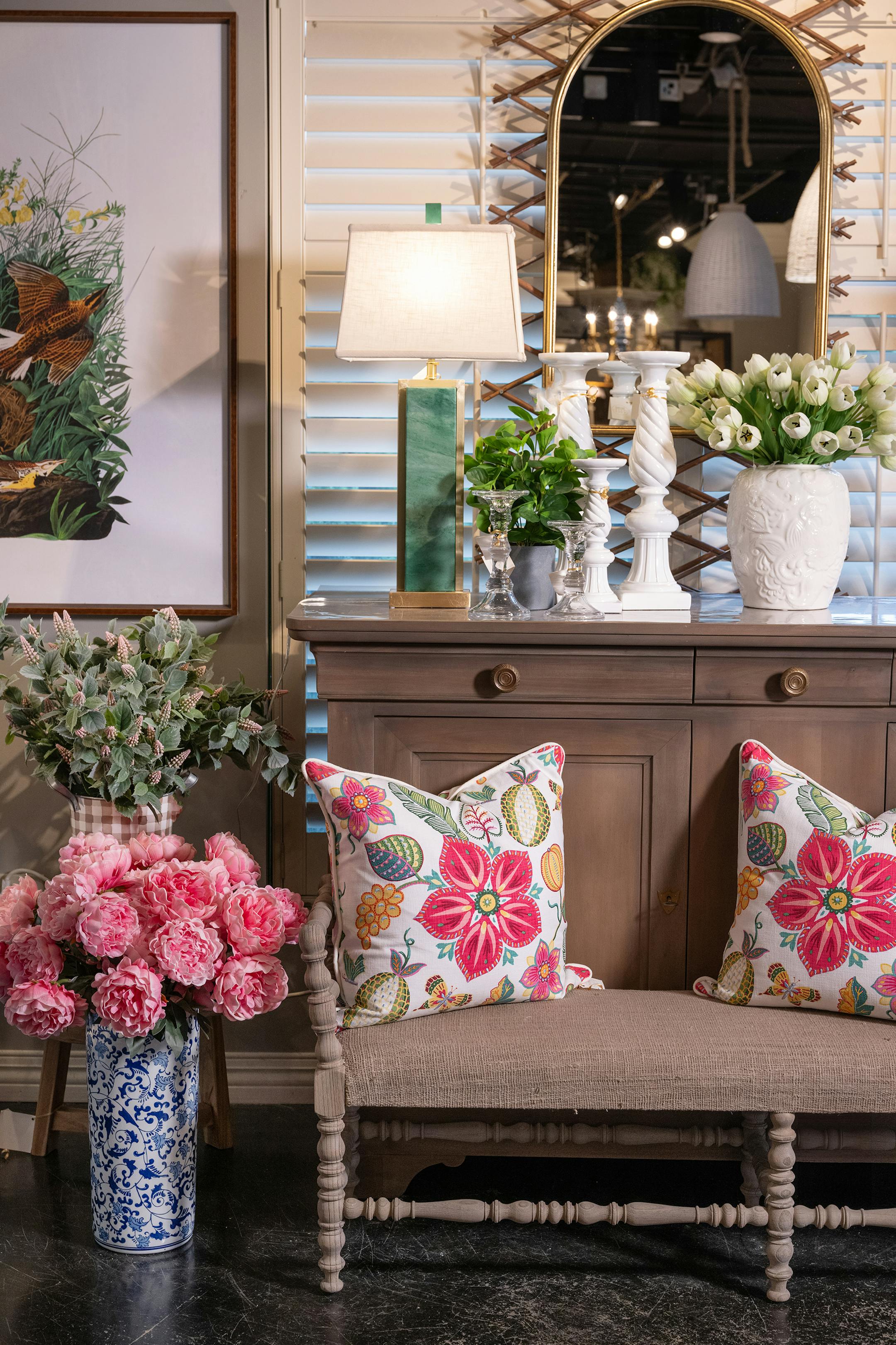 Add an unexpected touch by popping a space with artwork that features red or pink tones.