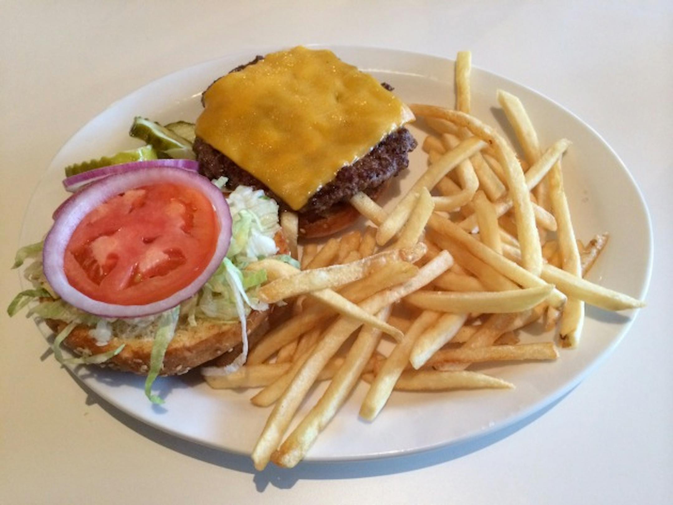 Me? I went old-school and opted for the single third-pound beef patty, From there, I went with Cheddar, and a sesame seed bun, sticking with the freebie garnishes: pickle chips, shredded iceberg lettuce, a decently juicy tomato slice and a few raw onions.