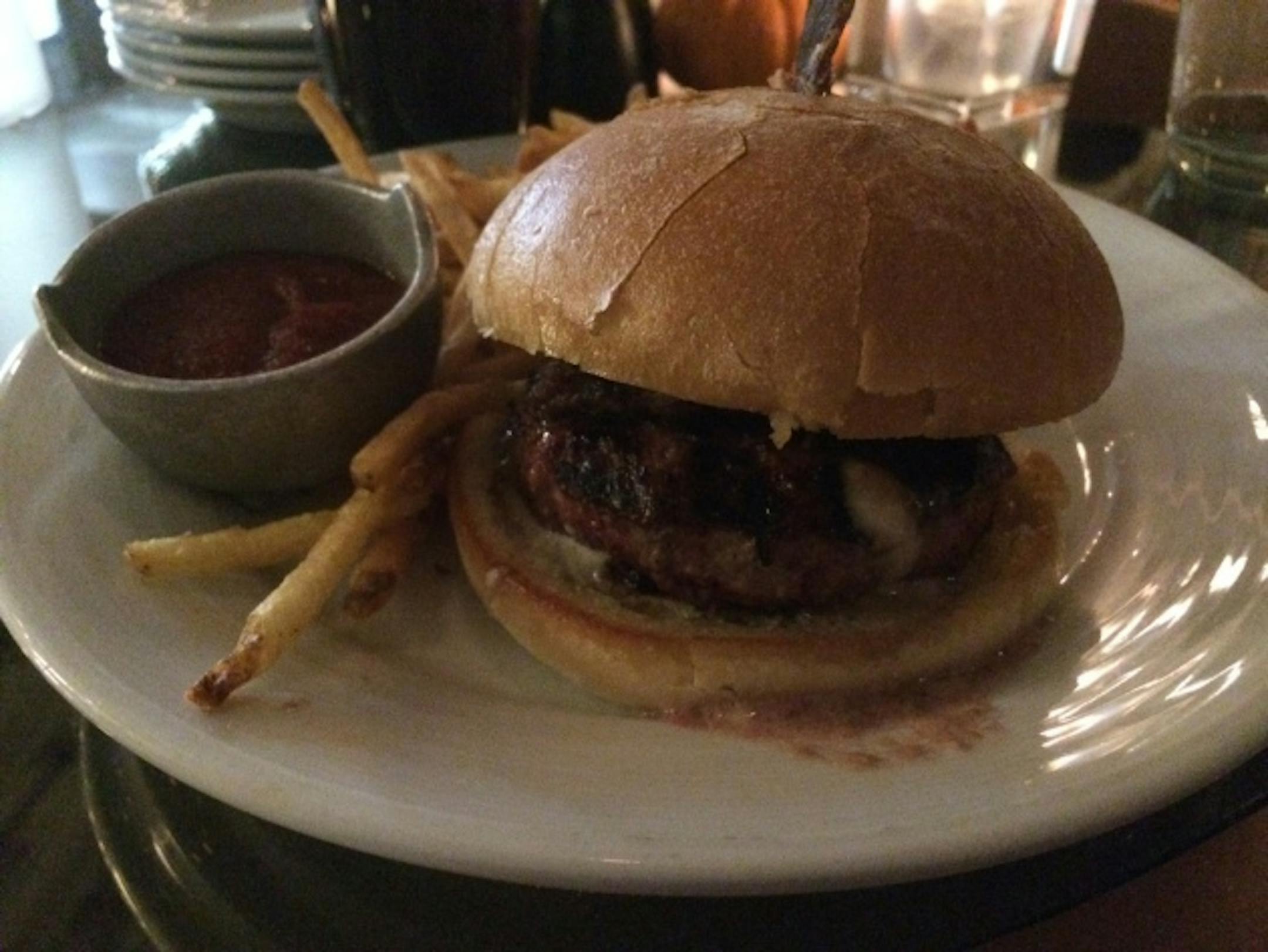 Like all memorable burgers, this one piles on the complementary flavor layers, starting with the beef's brawny, ultra-rich bite, which of course comes with a backstory (come on, this is Burger Friday, after all). In a previous job, Kyndberg had collaborated with the premium beef go-to folks at Peterson Limousin Beef to develop a chuck-brisket-short rib grind, inspired by the much-lauded hamburger formula created by Pat La Frieda Meat Purveyors. It left such a favorable impression that Kyndberg filed it away for future reference, remaining on the lookout for a place to re-introduce it. (I think the results are pretty close. Taste-test for yourself, with a visit to Lake & Irving, which imports the La Frieda product for its precedent-setting burger.)