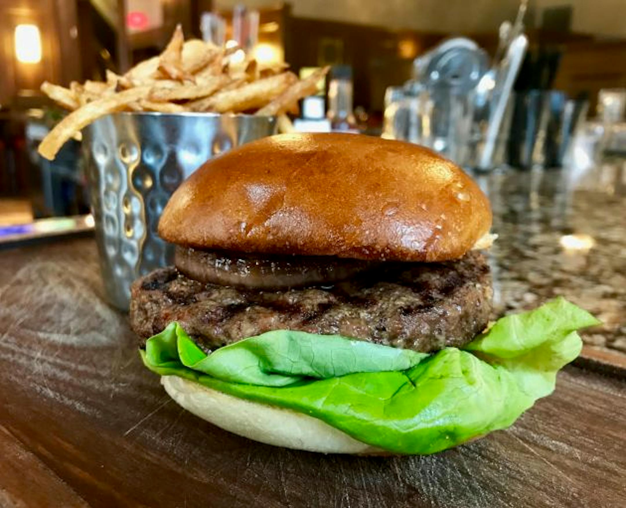 Garnishes are kept to a minimum. A colorful layer of tender Bibb lettuce leaves, slipped under the patty, prevents those beefy juices from soaking into the lightly toasted bun (a gleaming, egg-enriched bun, from Rise Baking Co.'s New French Bakery).