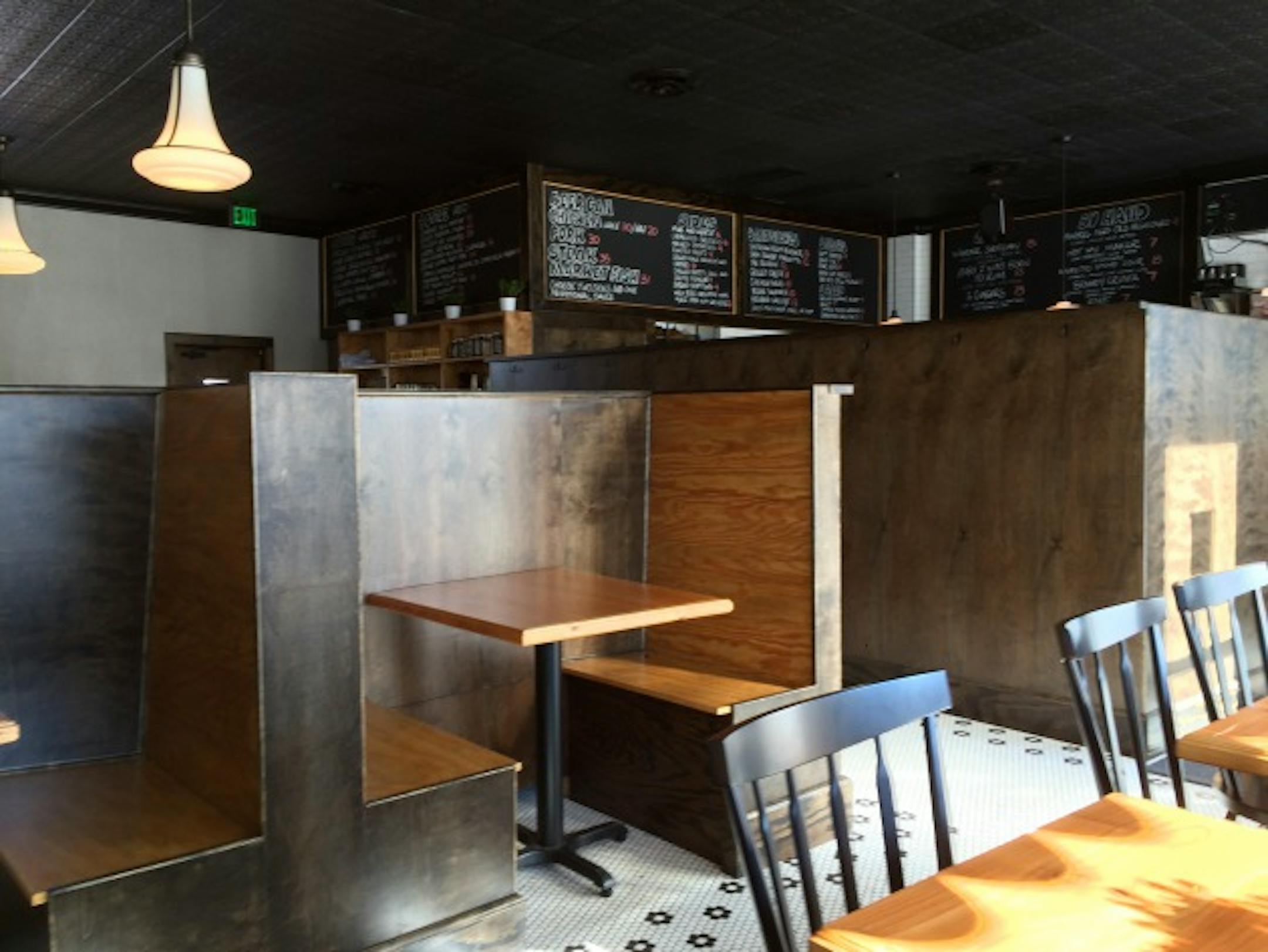 The Oulmans have, pardon the expression, modernized the place. The floor is now outfitted in handsome white-with-black-accents hexagonal tile, several walls have been sheathed in enough classic white subway tile to outfit the kitchen backsplashes of an entire suburban subdivision, and the all-black ceiling is styled to resemble a classic tin pattern. Amid all that black-and-white crispness, the Modern's chalkboard menus remain, as does the bar's placement, and the dining room has been cordoned off into a series of conversation-friendly booths that bear a distinctly Modern-esque (and Rabatin's-like) vibe.