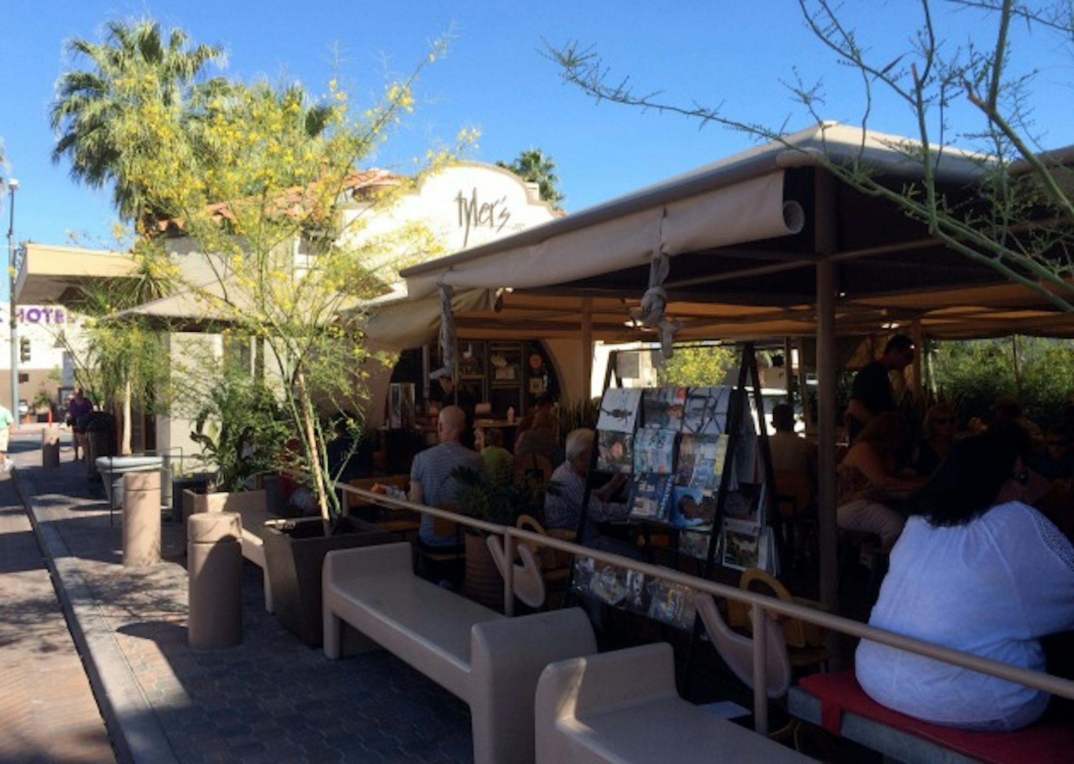 Let me backtrack for a moment. Twenty minutes earlier, my husband and I had just stepped off the airplane, picked up our rental car and made a beeline for what has become a daily winter vacation ritual: Lunch at Tyler's. Here's a telling indication of how much we love the place: During our recent eight-day stay in Palm Springs, we found ourselves at Tyler's seven times. Trust me, it would have been eight, but the restaurant is closed on Sunday.