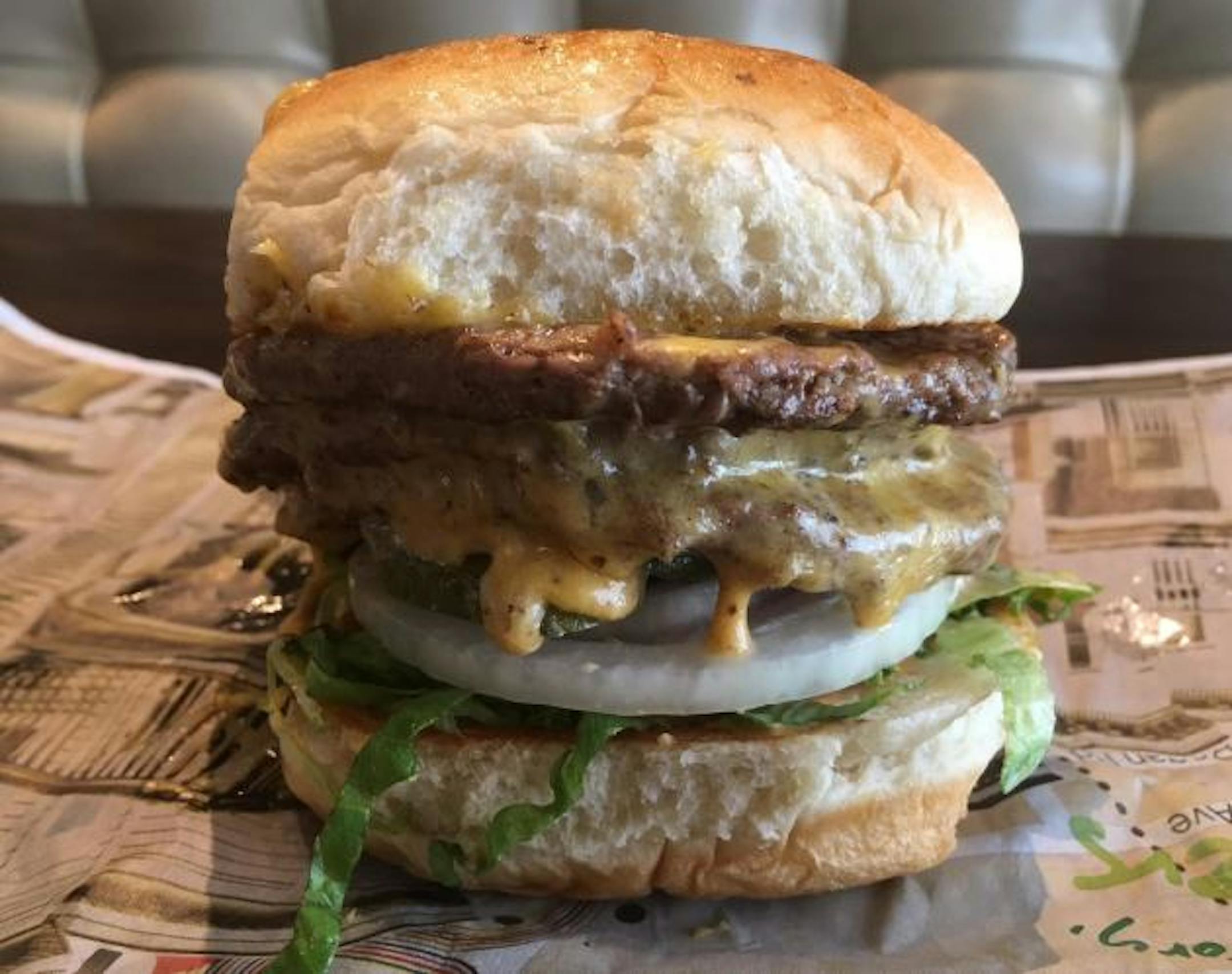 Since the megamall is all about excess, I went with the triple-decker. The patties – uniformly pressed thin and wide, wide enough to meet the bun's edges – are formed with a blend of chuck, brisket and short rib, a prescription that adds up to a full-bodied flavor and rich, juicy texture. They're cooked to a medium (zero pink on the interior) but without the exterior forming any crunchy, flavor-boosting char.