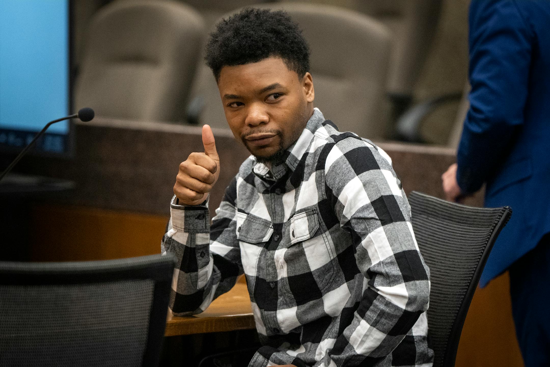 Defense attorney Lee Wolfgram played surveillance video showing May and a friend were attacked while shopping at the Mall of America last summer, waiting to make a purchase when they were jumped by a group of five other men. They ran out of the store. May's friend, Shamar Alon Ramon Lark, shot three "warning shots" back into the store moments later, as Wolfgram said the other men were running after them. No one was hurt. Lark has since pleaded guilty to second-degree assault.