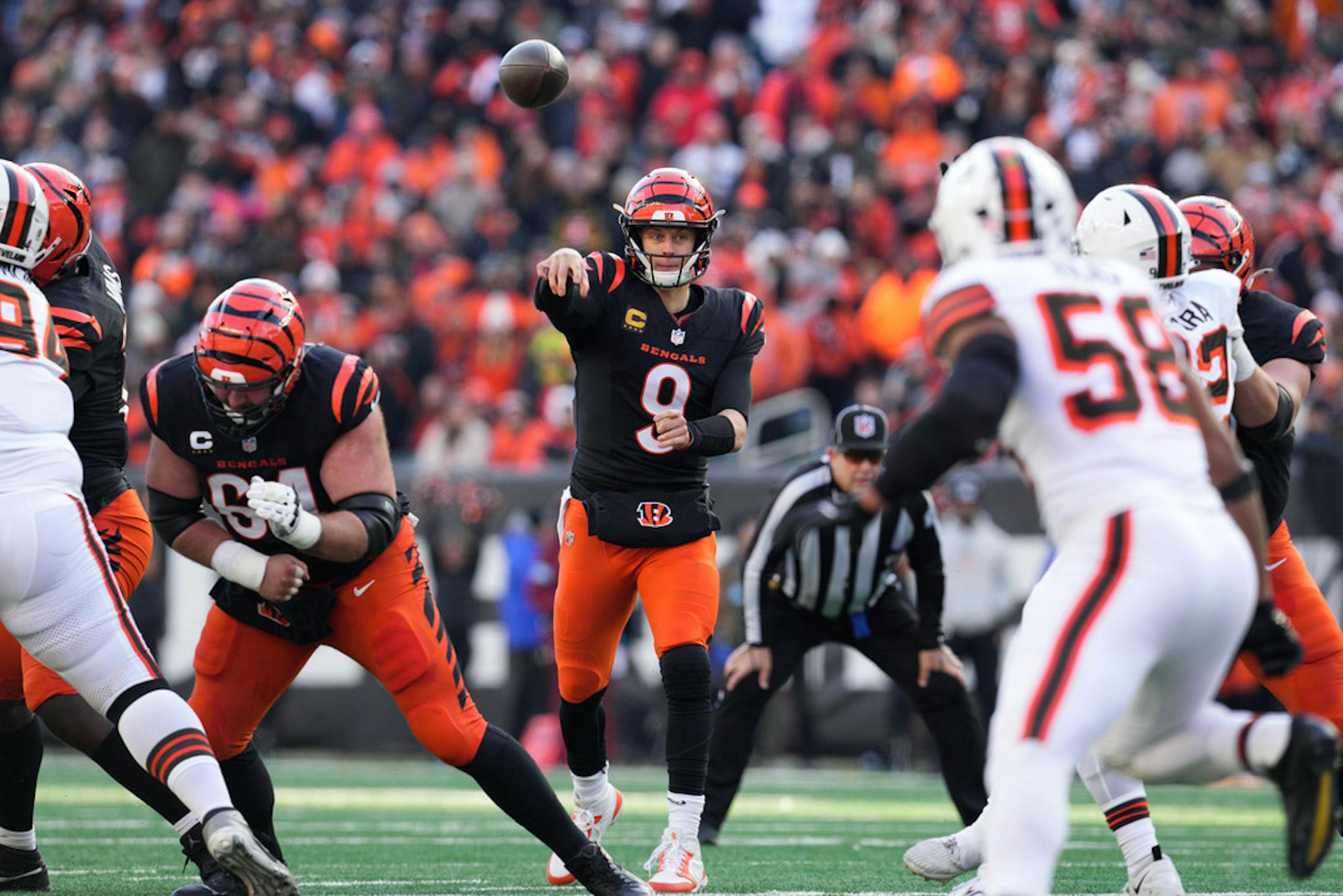Burrow leads the league with 4,229 yards passing and 39 touchdowns.