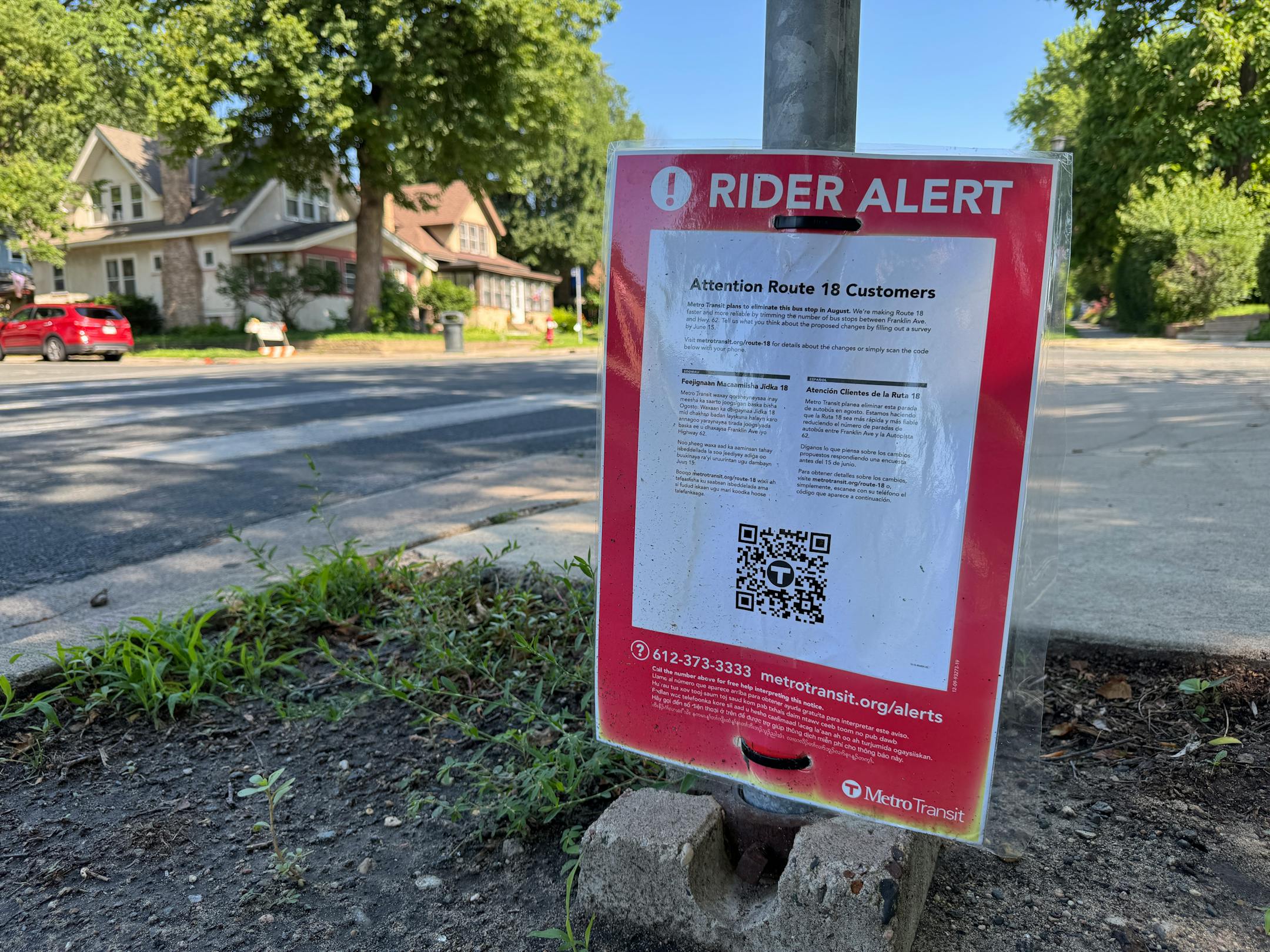 I’ve spent a decade there squinting down Nicollet Avenue, waiting for bright orange lights — 18 DOWNTOWN — to peek above the horizon. So it was jarring to discover a tag noting the stop’s demise to make the Route 18 “faster and more reliable.” I’ll have to walk an extra block as a result.