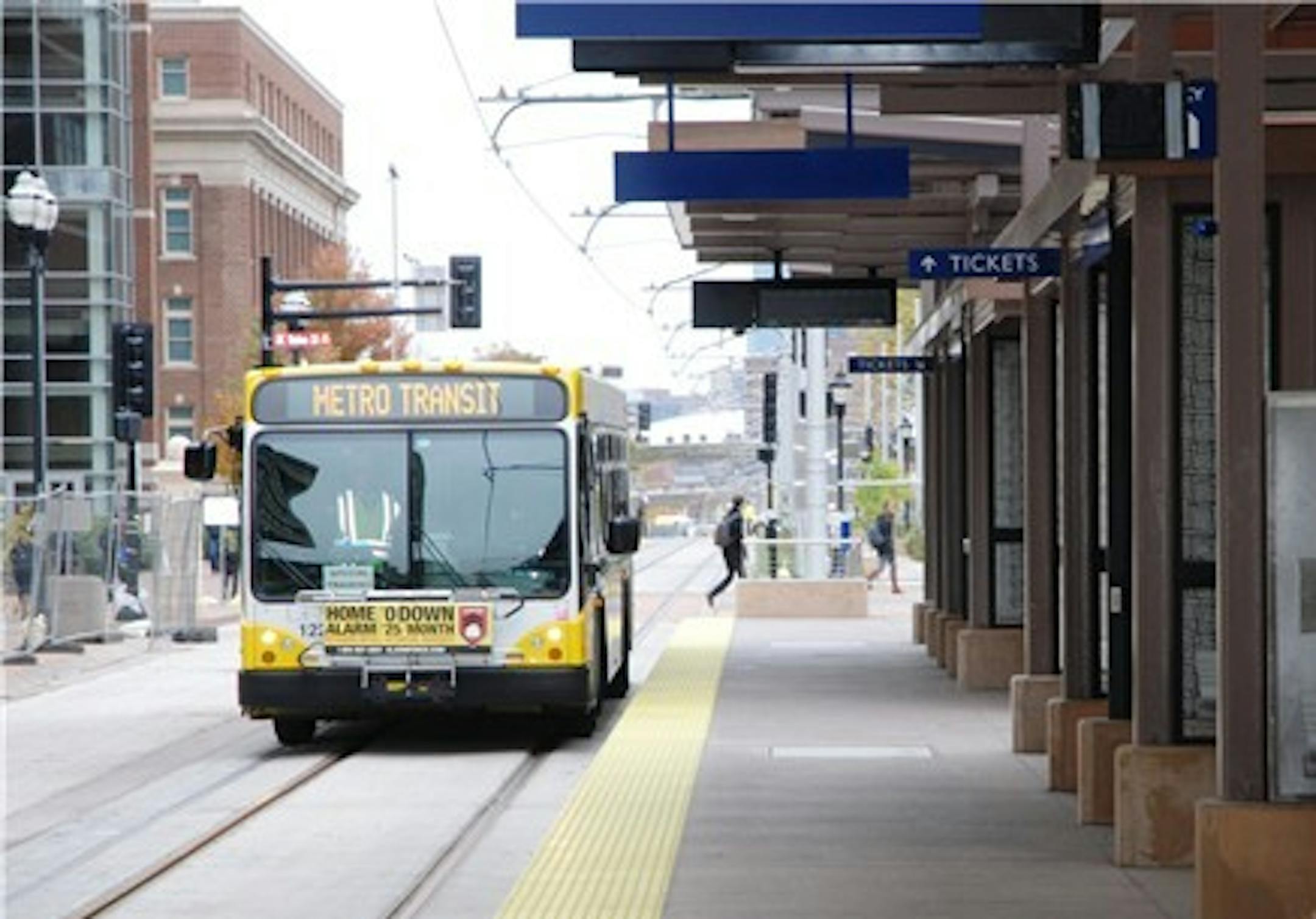 Many on the U campus are not used to seeing traffic on Washington Avenue since it has been closed to vehicular traffic for more than two years. Testing of the Green Line, the light-rail line which will run from downtown Minneapolis to downtown St. Paul, began earlier this year. With buses returning Saturday, Metro Transit officials remind students and visitors to campus to cross only in marked crosswalks and refrain from station areas that are closed.