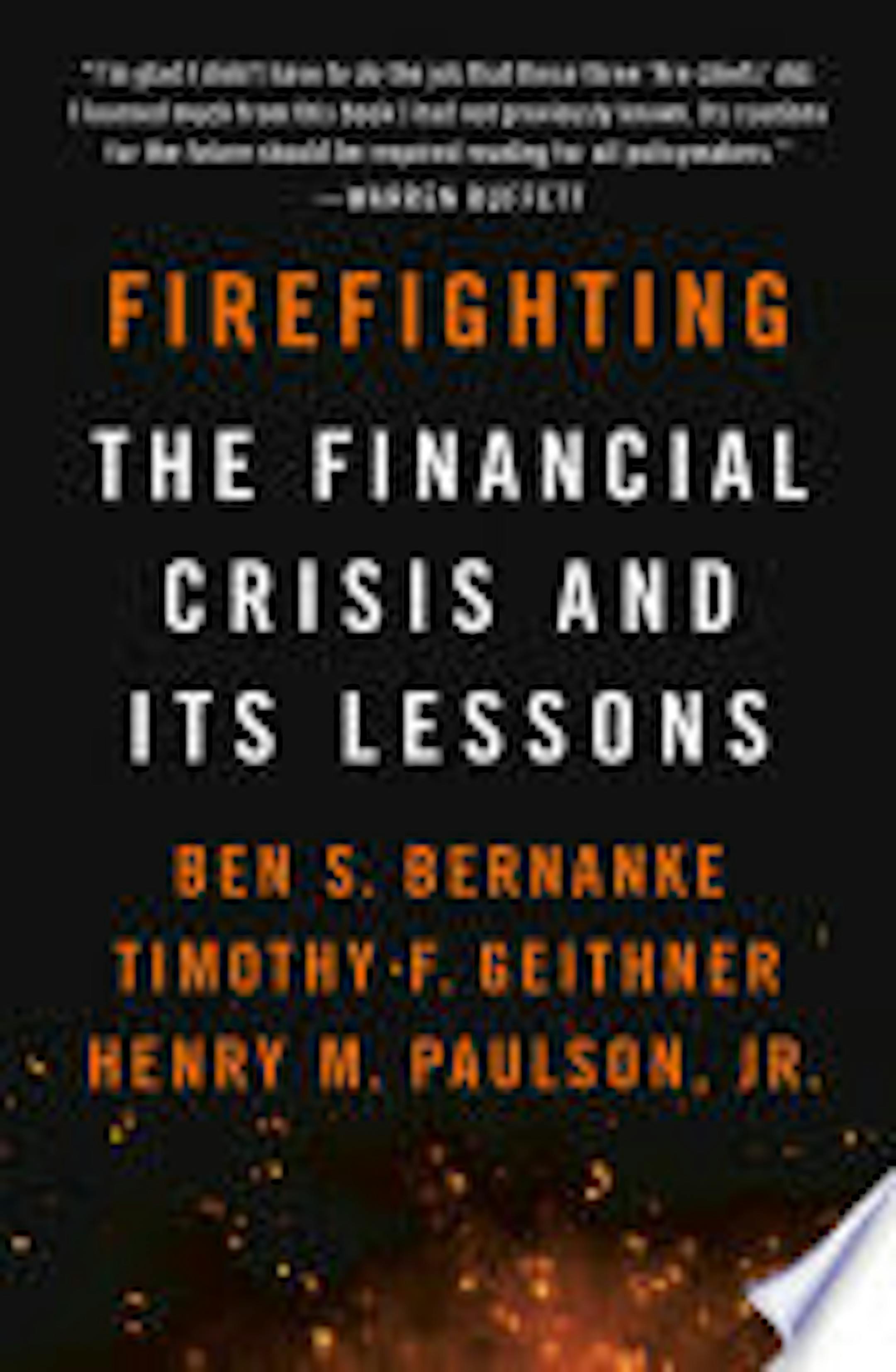 Ben Bernanke, Timothy Geithner and Henry Paulson Jr., Penguin Books, 230 pages, $16. For a few months in 2008 and 2009 many people feared that the world economy was on the verge of collapse. "Firefighting" is a brief account of that critical moment by three of the most important actors. Ben Bernanke was the chairman of the Federal Reserve Board, then and now the most influential economic position in the world. Henry Paulson Jr. was President George W. Bush's Treasury secretary. Timothy Geithner was president of the Federal Reserve Bank of New York — another key position in the Fed system — then became Paulson's successor under Barack Obama. There are a number of forms a book by central players in a historic episode can take. "Firefighting" could have been a juicy tell-all; it could have been an exercise in boasting about how its authors saved the world; it could have been a litany of excuses. There is some of each in this book, but it is mostly a primer on why the crisis was possible (and why, even so, almost nobody saw it coming); a ticktock on how the crisis and the financial rescue unfolded; and a very scary warning about the future. Much of what Bernanke et al have to say here is familiar to economists, but perhaps less so to the general public. Should we be worried about another crisis? Yes, the authors say, in a final chapter that is downright scary. Banking, they argue, is actually less risky than it was, thanks to financial reforms, but crises will still happen, and when they do, the firefighting abilities of policymakers will have been gravely compromised by current policy.