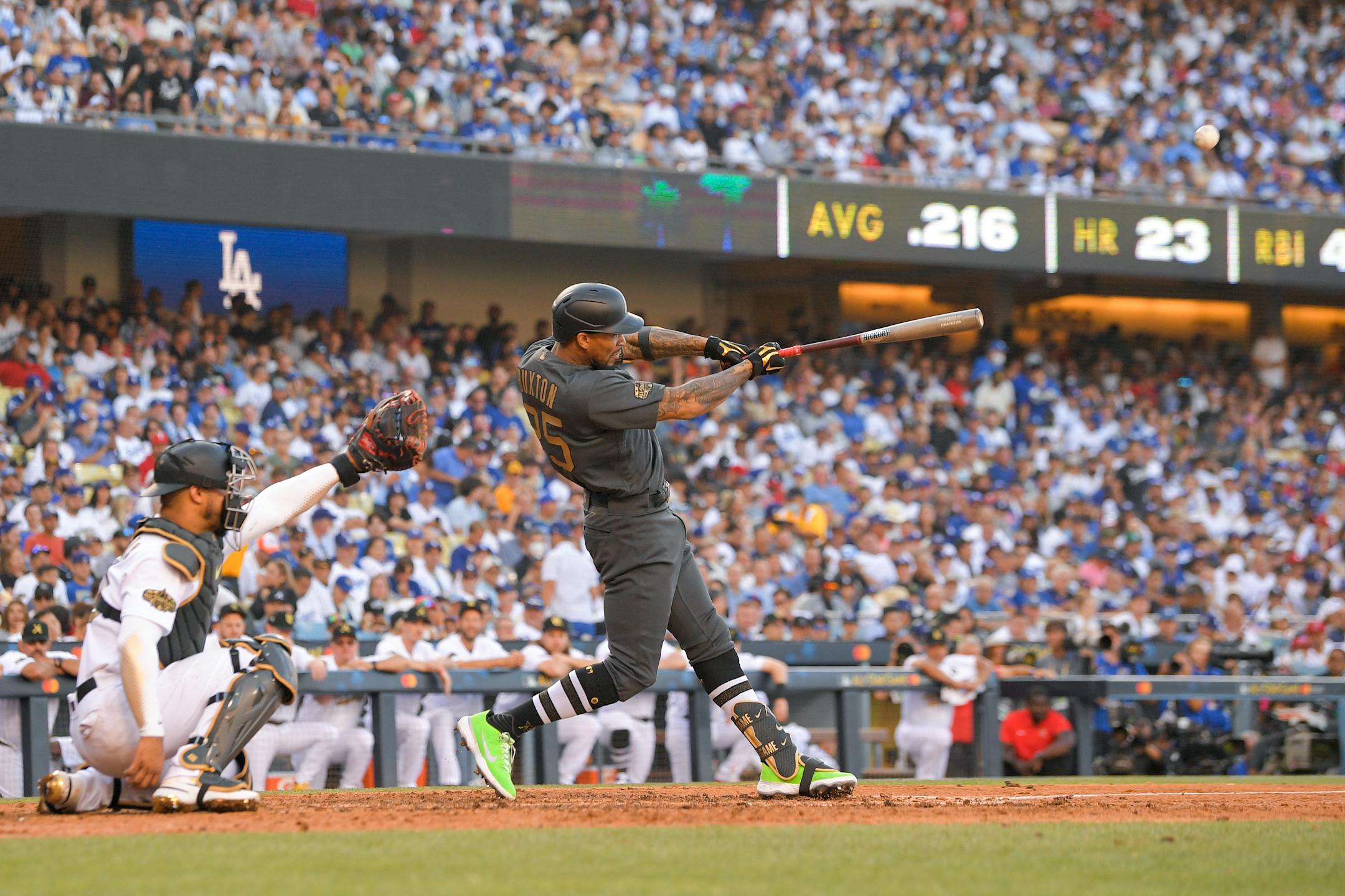 • Went 1-for-2 at the plate. Struck out swinging on four pitches against Miami's Sandy Alcantara in the second inning and followed up Stanton's home run in the fourth with a blast of his own on a 2-1 pitch from the Dodgers' Tony Gonsolin. Buxton, decked out in neon green shoes, pumped his arm as he's known to do as he rounded the bases. The 425-foot blast landed in the left-field seats and put the AL ahead 3-2. Buxton became the fourth Twin to homer in an All-Star Game and the first since Brian Dozier in 2015. In a postgame interview with Fox's Tom Verducci, Buxton said he told himself before his second at-bat: "I can't strike out twice."