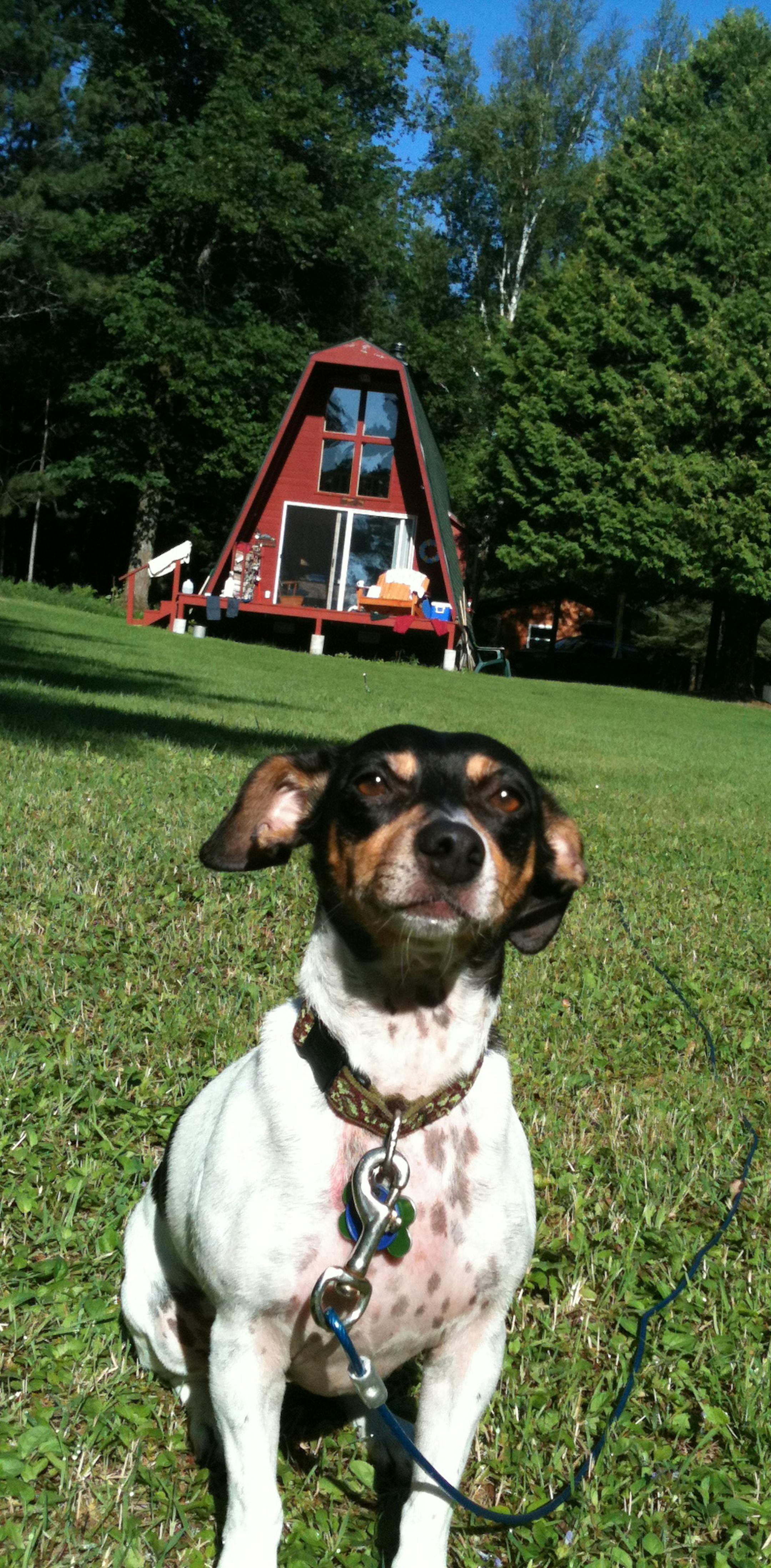 My Grandpa John takes us fishing and we have loads of fun engaging in "catch and release" of sunfish while he tells us stories about the outdoor escapades he had when he was a little boy. He also designs really fun activities for us, such as treasure hunts with maps and clues, or gives us a metal detector to search for buried treats. Grandma Diane often brings up a homemade dinner, which we enjoy on the picnic table under a screened tent. My Mama takes us out on the lake in our kayaks and canoes to watch otters, beaver, geese, loons, pelicans and bald eagles in-between refreshing sessions of swimming in the water. My Papa takes us for daily walks on our "secret" trails through the woods, while he teaches us how to identify (and avoid) poison ivy. Our dog Cleo loves to investigate and run around the spacious front yard.