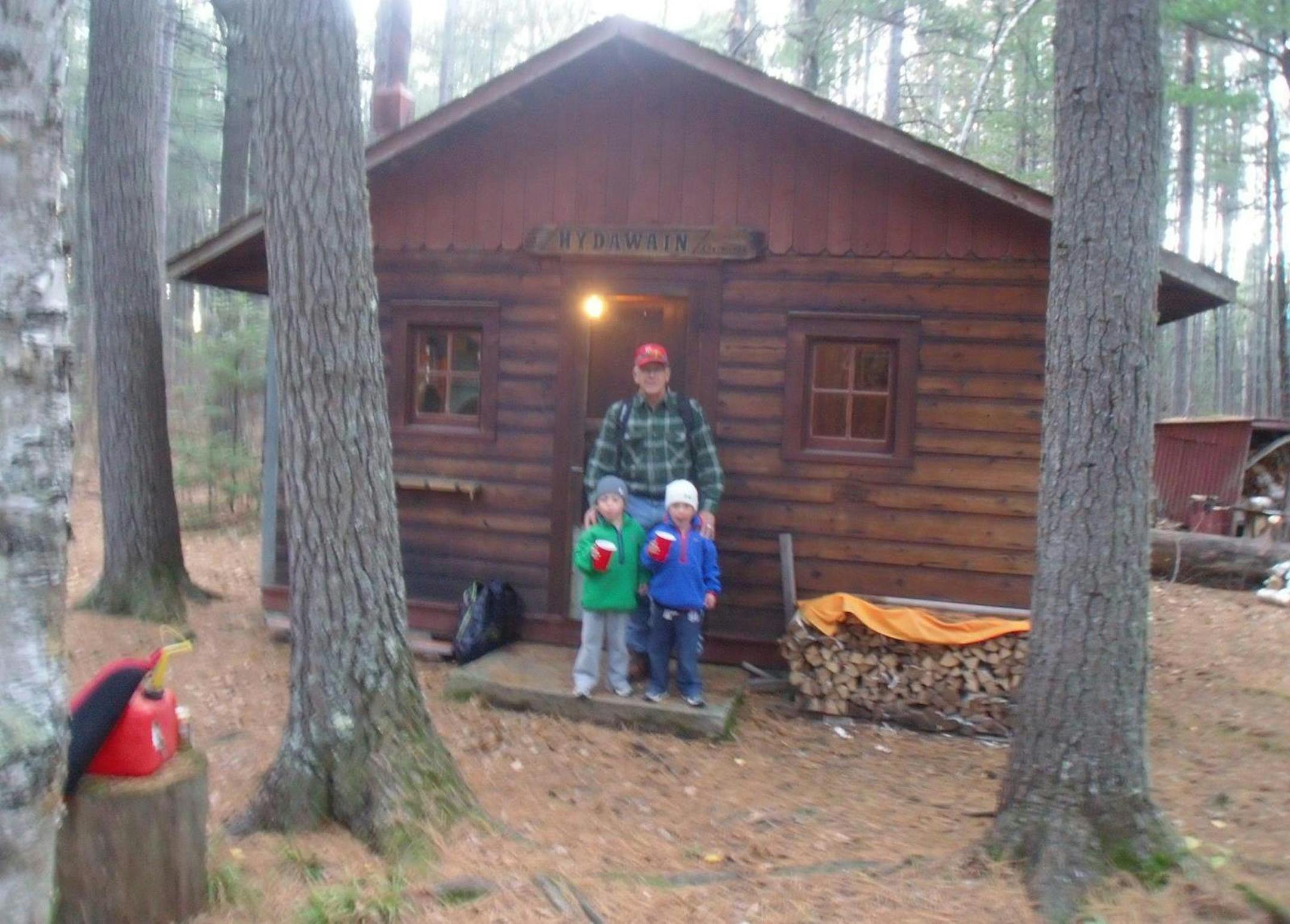 Built in 1960, this cedar cabin was constructed entirely from milled cedar power poles. During the course of a single summer, everything from the drop siding to the tongue/grooved paneling to the 2- by 6-foot rafters to joists were walked in about a quarter mile. A "sand point" was driven about 16 feet into the ground with a pitcher pump added, providing the hunters with cooking and washing water for the past 50-plus years. "Hydawain" is heated by a vintage 1930s porcelain cooking range, and the lighting "system" consists of two white gas-powered Coleman lanterns. The rustic look of "Hydawain" is enhanced by the surrounding mature white pines. Needless to say everything is "old style" — much like the beer we drink here during hunting season.