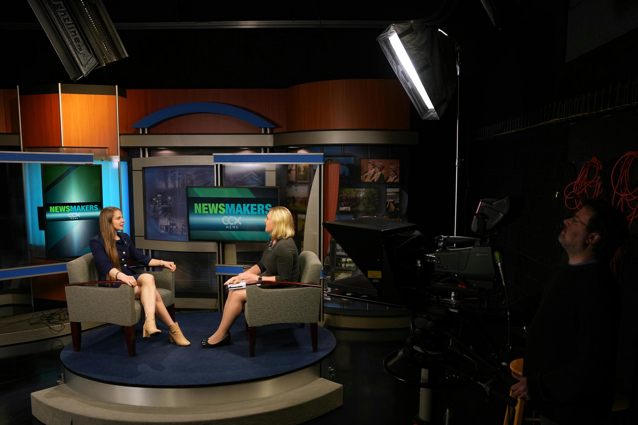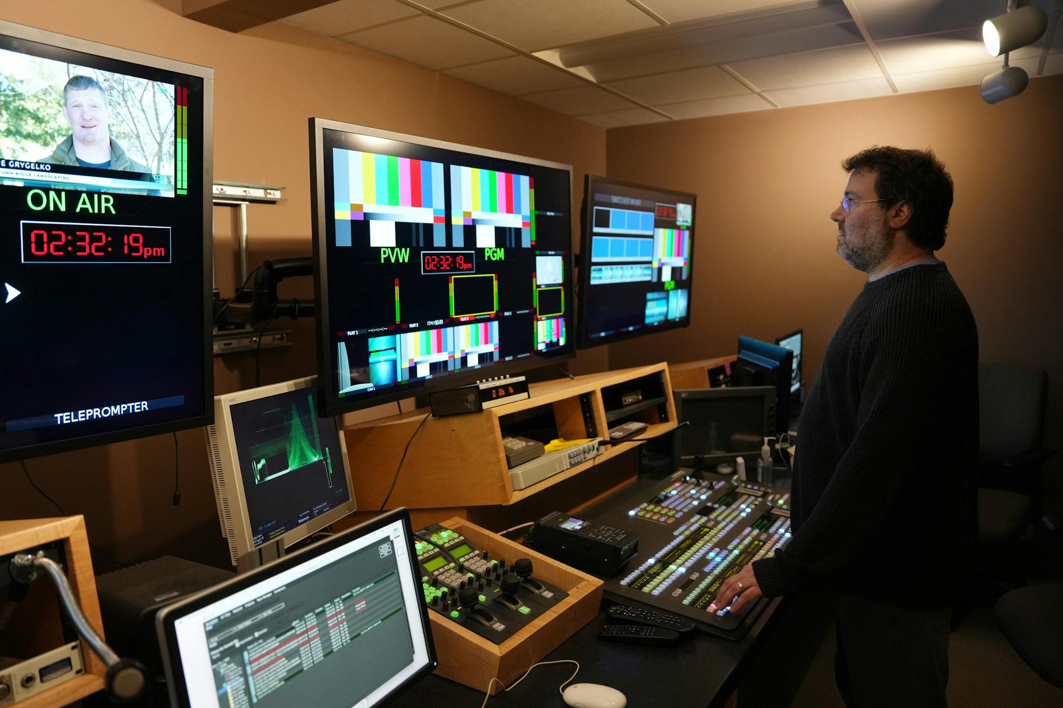 Dave Kiser welcomed the mayor of Osseo at the entrance of the CCX Media cable TV station for their regular televised catch-up. The mayor, Duane Poppe, knew exactly what to do: He miked himself with a lavalier and quickly settled into a familiar armchair in a spacious professional studio for his latest recording of “Mayor’s Minutes.”