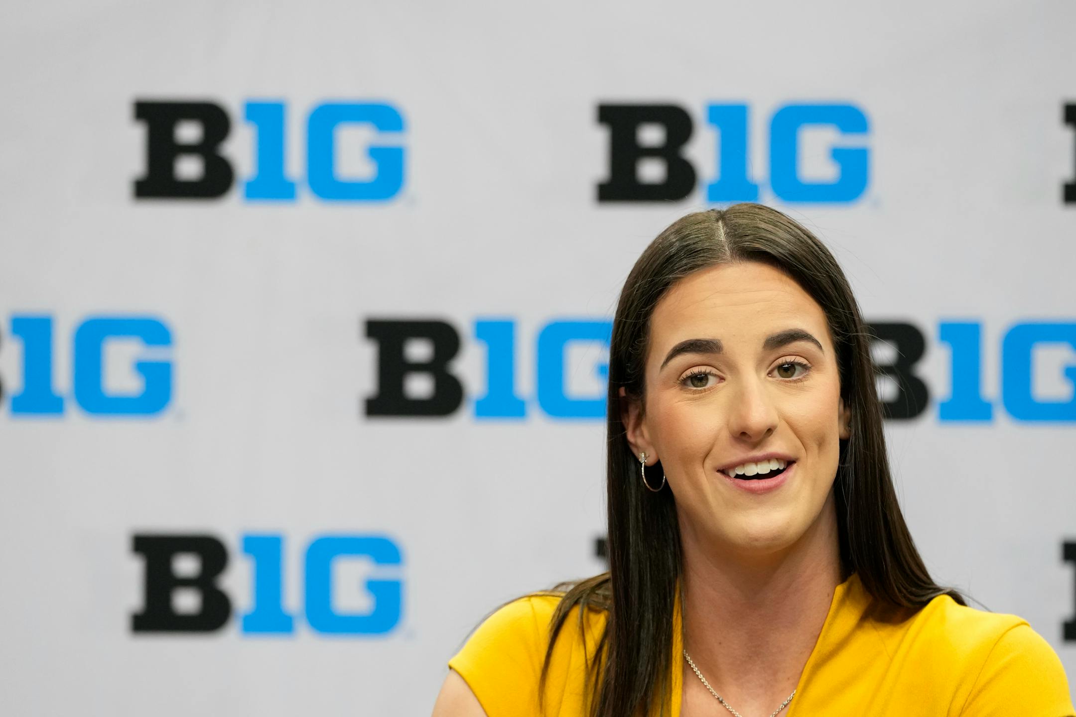 On the eve of Big Ten media day in Minneapolis, Iowa star Caitlin Clark embraced her celebrity status while running into some fans at Murray's Steakhouse.