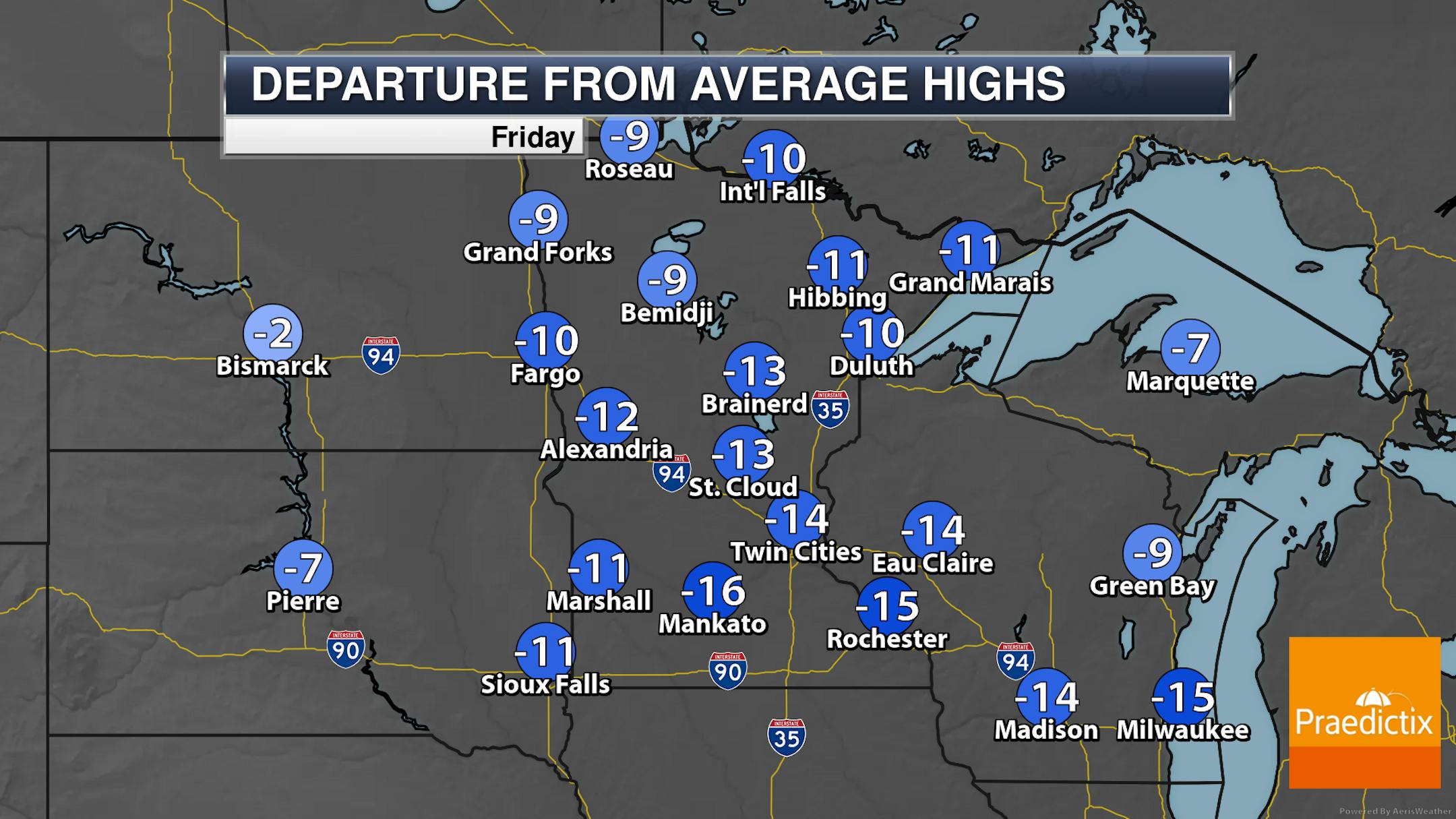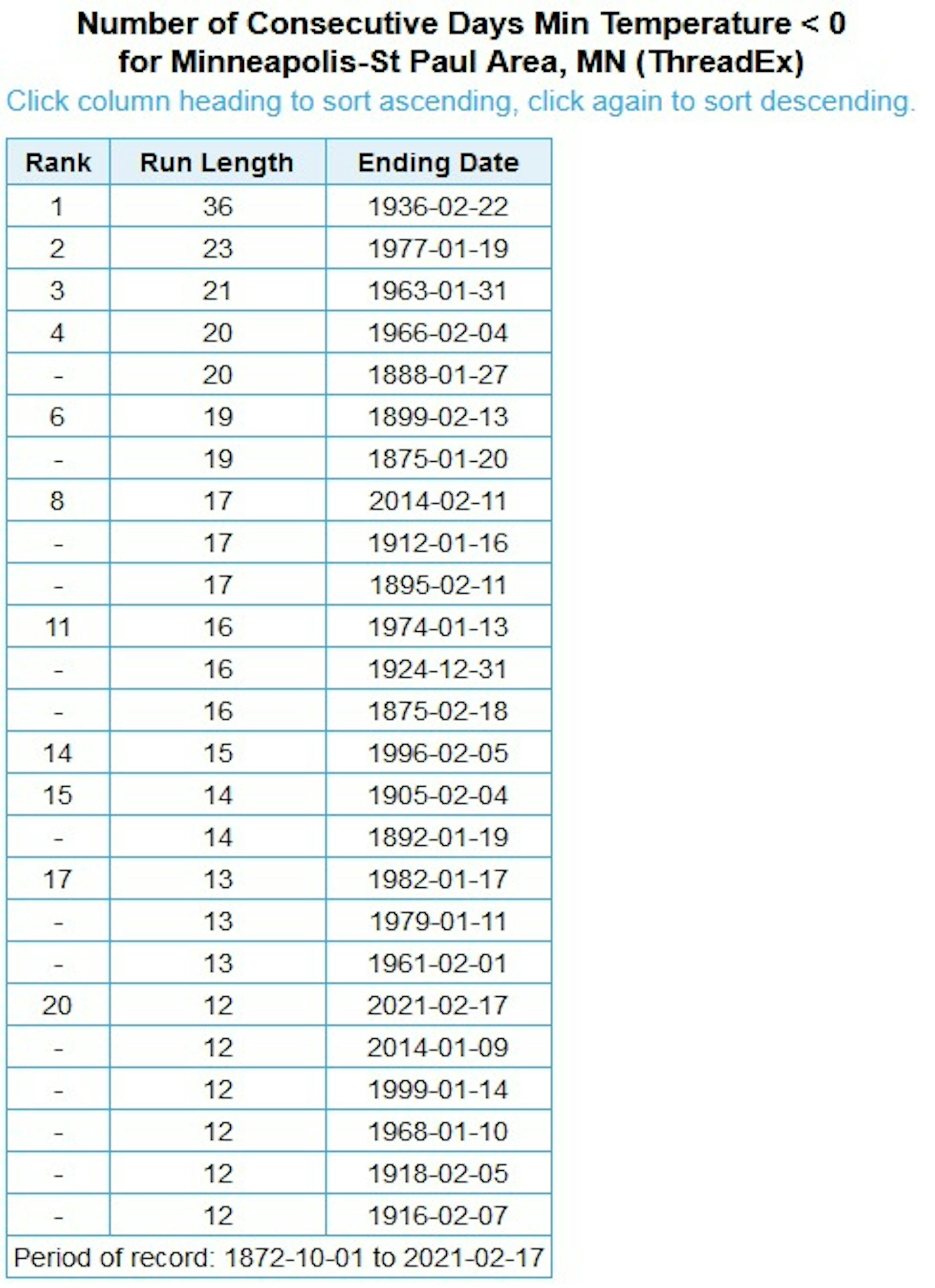 One stretch that we did end Thursday morning was our streak of subzero lows. Wednesday morning marked the 12th morning in a row, which was good enough for 20th place. The morning low Thursday was above zero, ending this streak. I'll be glad when we can stop talking about this long cold stretch, period!