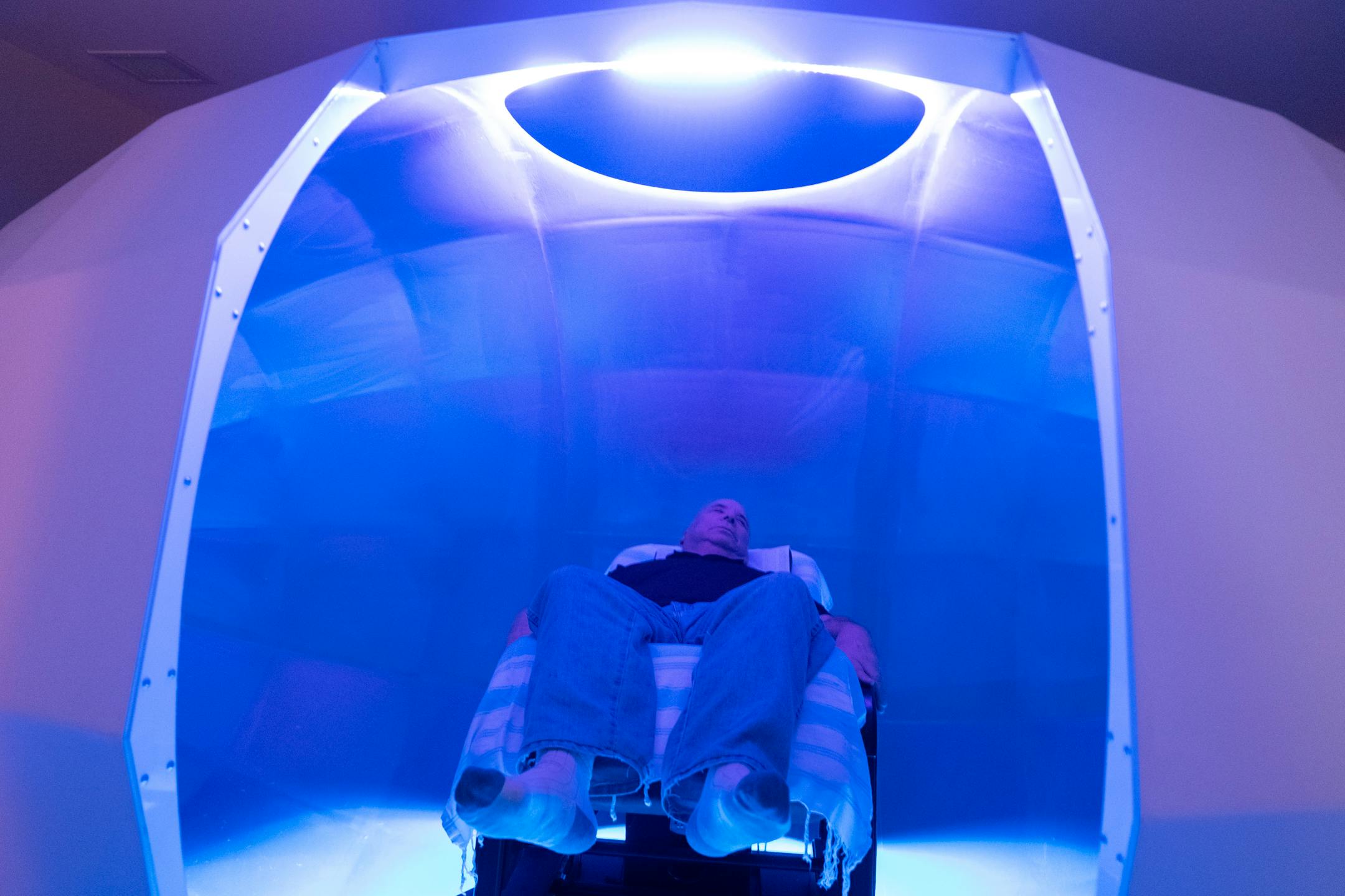 According to the OM Center, you recline in the egg while healing sounds, music and light wash over you. That’s supposed to help with anxiety, sleep and memory. It claims to aid the immune system, increase energy, restore harmony and induce “a state of supreme relaxation.”