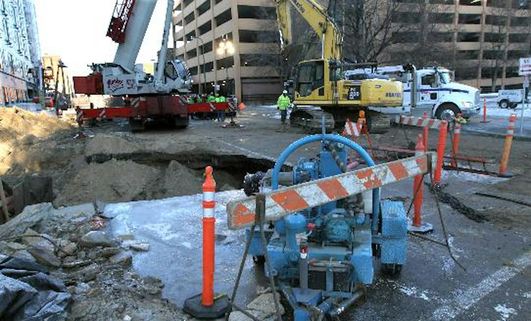 "When you have mains of this size, there's a procedure," Kotke said. That involves closing off water valves farther from the site so that the water flow and volume in the affected area is gradually reduced, a process utility officials called pinching off. The break was ultimately isolated in a three-block stretch of main on N. 2nd Street.