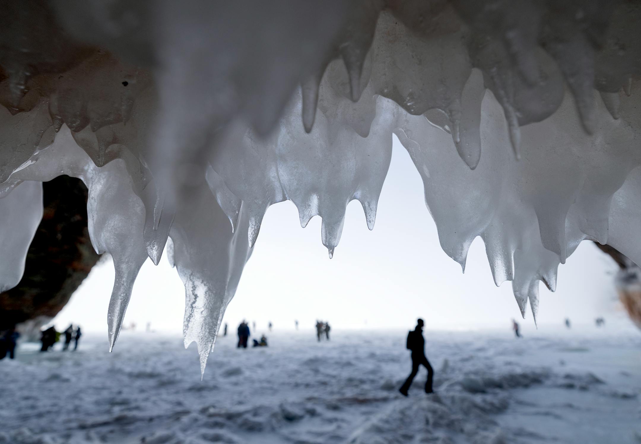 APOSTLE ISLANDS NATIONAL LAKESHORE — My calves ached as I walked on frozen Lake Superior, carefully maneuvering around jagged shards of ice, some hidden under a layer of snow.