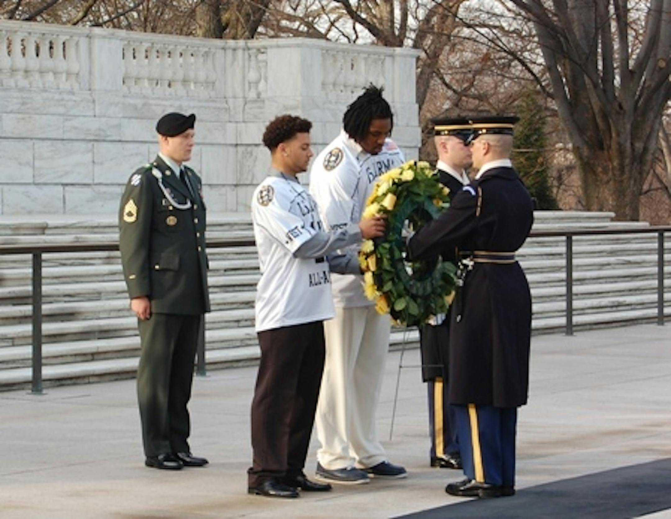 Plenty has been written about Cretin-Derham Hall's Seantrel Henderson, considered by some to be the top college prospect in the country, but here is an image you probably haven't seen: Henderson at a wreath-laying ceremony for the Tomb of the Unknown Soldier in Washington, D.C. ... Henderson was on a tour of D.C. from Sunday-Tuesday as part of the distinction of being one of seven finalists for the U.S. Army Player of the Year award (past winners include Adrian Peterson in 2004 and Jimmy Clausen in 2007). The picture was sent along by a P.R. firm representing the award.