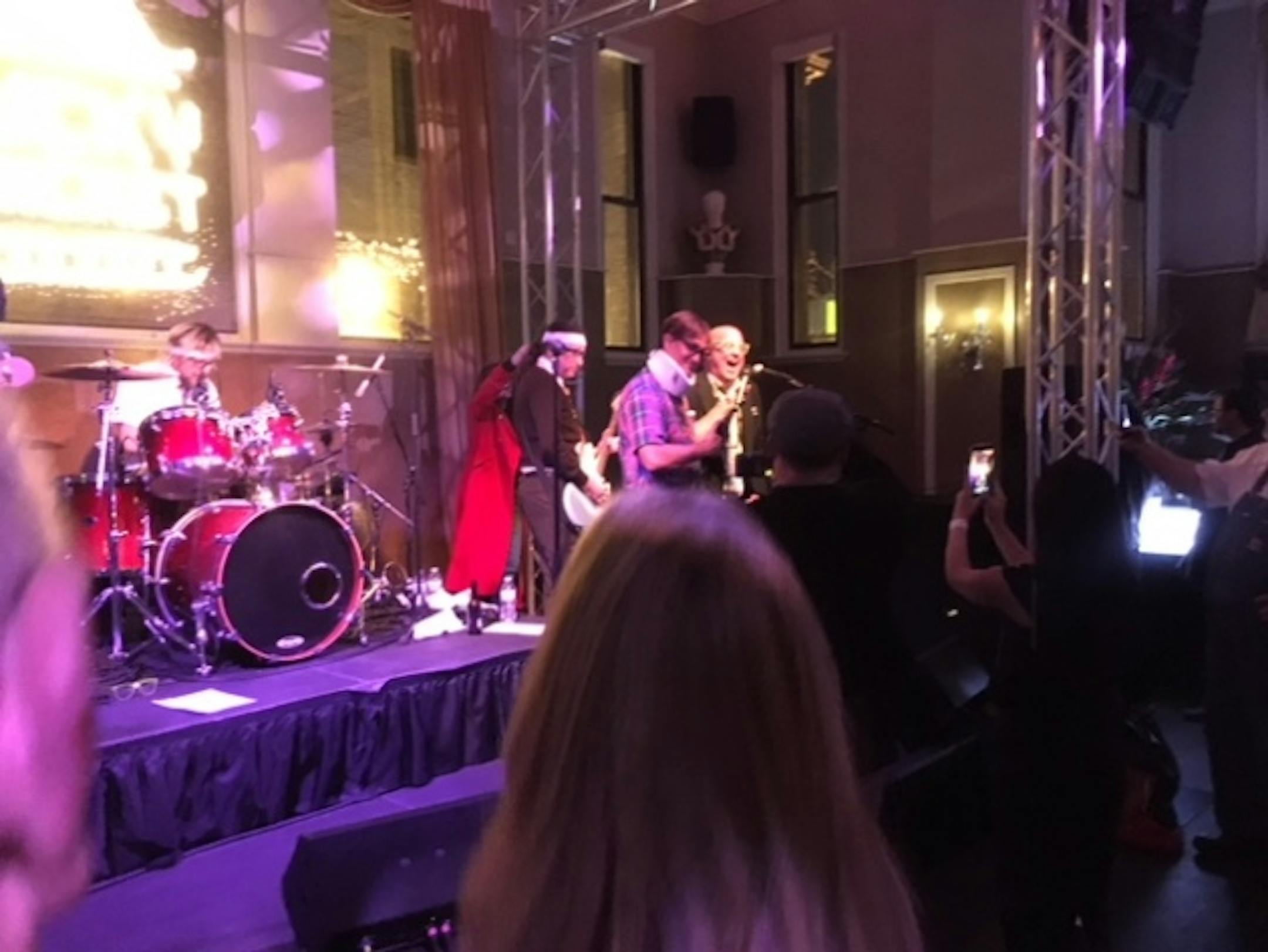 Zimmern joined the house band, The Spazmatics, during several numbers at The Mansion in Uptown as they rolled through one classic '80s tunes after another. The enthusiastic crowd included Guy Fieri, "Top Chef"'s Tom Colicchio and "Man v. Food"'s Adam Richman, as well as local-media personalities Eric Perkins and Jason DeRusha.
