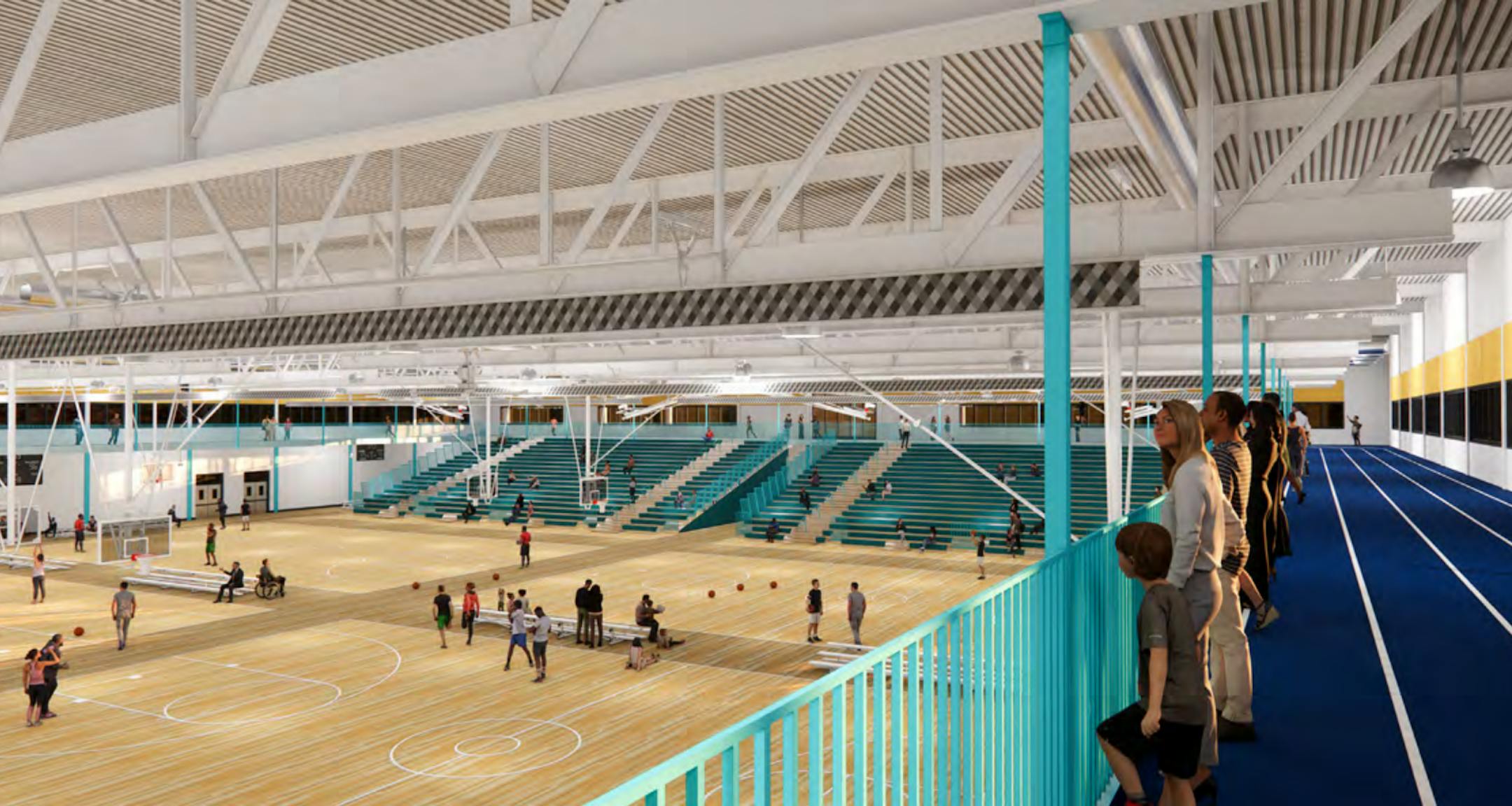 The findings culminated in a 148-page recommendation to the city, complete with renderings showing outdoor fields and a 125,000-square-foot gym with courts that could be adapted for multiple sports.