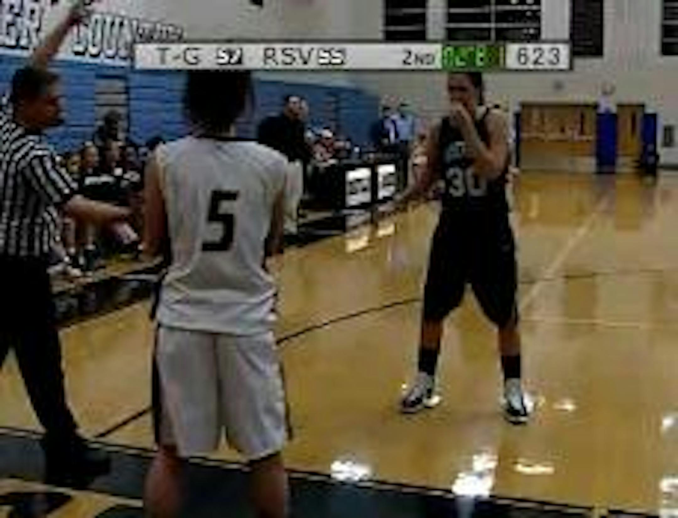 Yeah, this is double-dipping a little bit and forcing you, dear readers, to venture over to the other side of what we do. In this case, though, it's worth it: Check out video of this buzzer-beater from last night's girls' basketball game between Roseville and Totino-Grace. Down by two. Half-court shot. Wow. (Still image taken from the video).