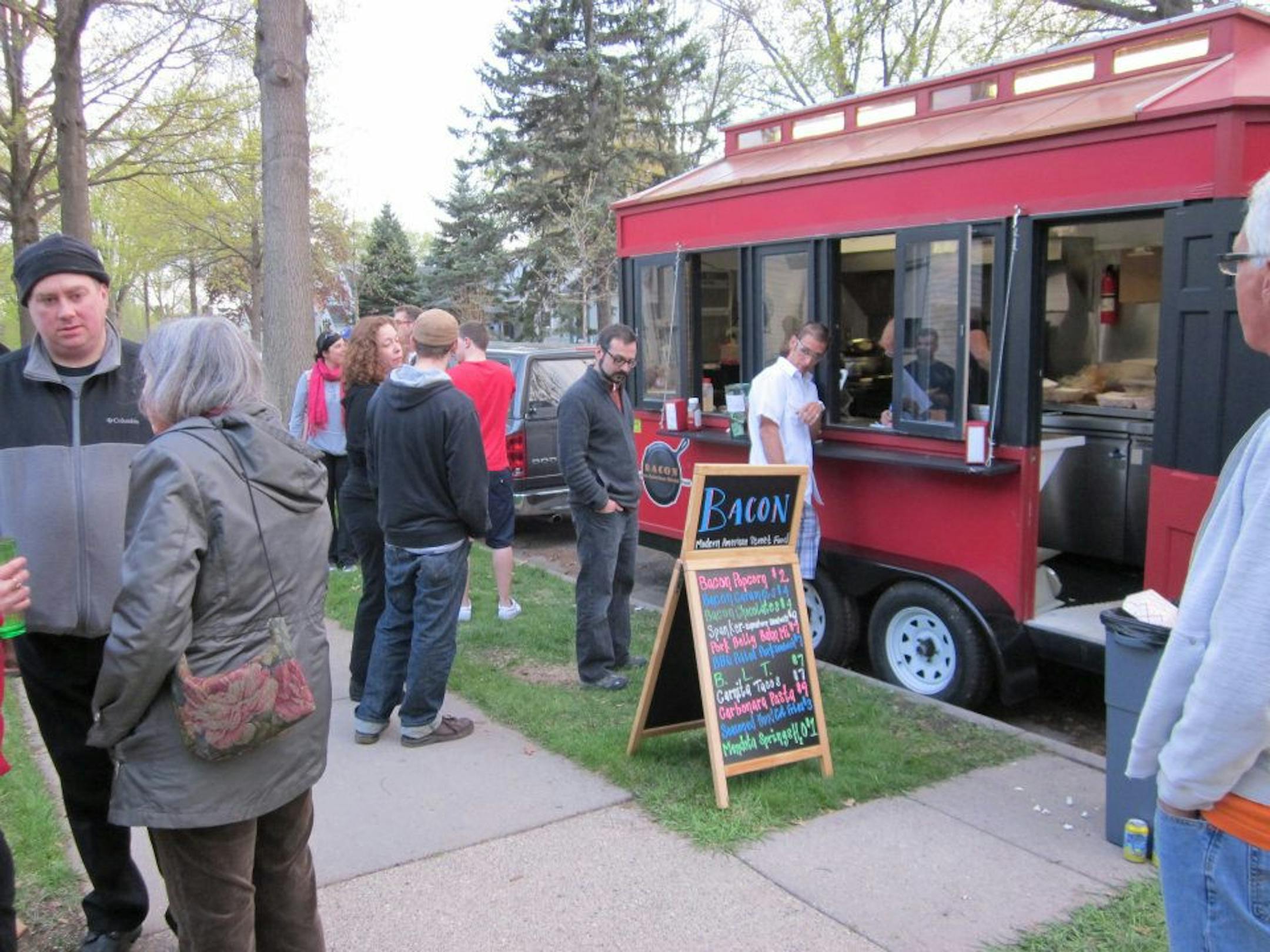 Yep, it's called Bacon, which just might be the Best. Food Truck. Name. Ever. The trolley-shaped vehicle turns out all kinds of pork-related goodness: BLTs, carnitas tacos, barbecued pulled pork sandwiches and bacon-flavored popcorn, for starters. Terrific hand-cut French fries, too.