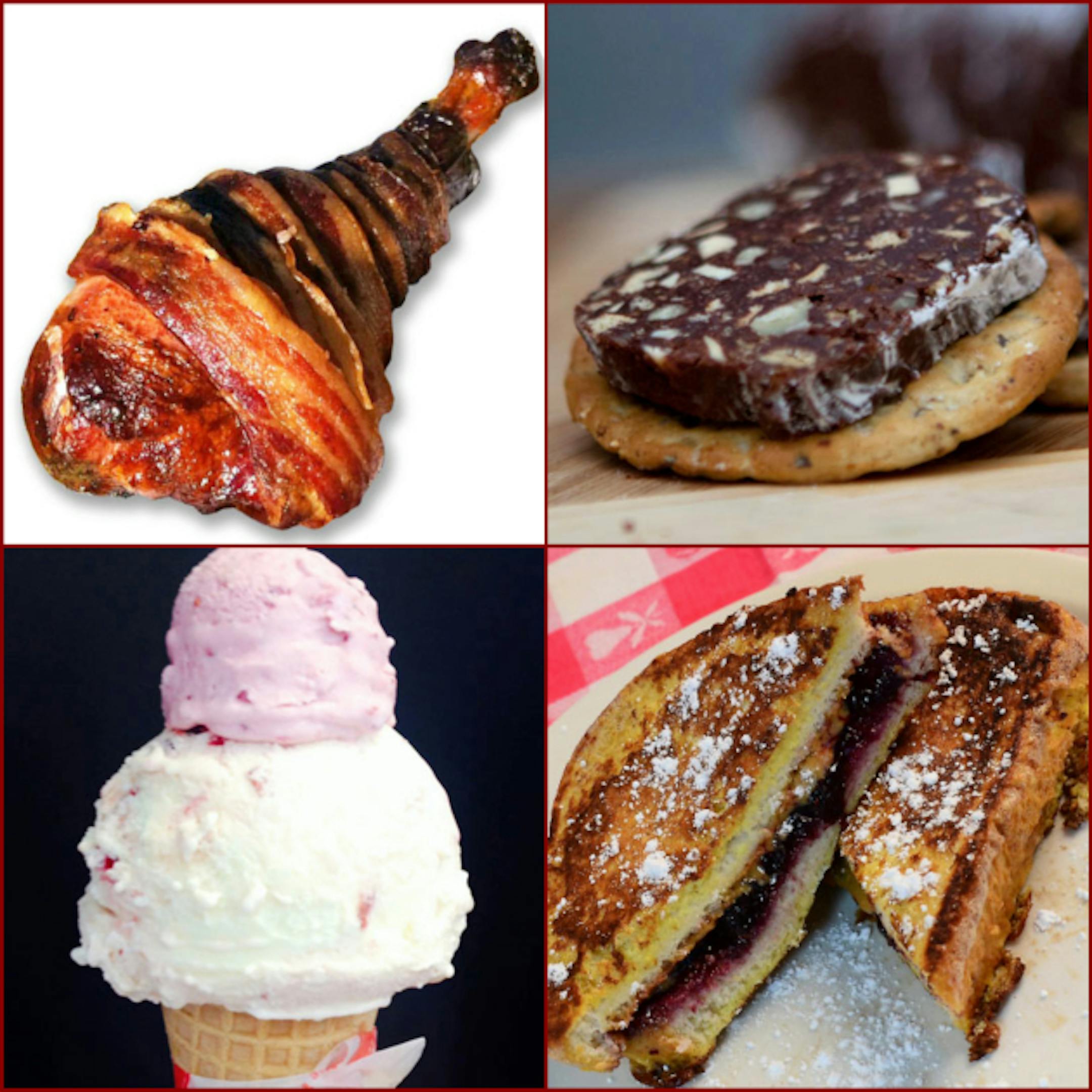 Peanut Butter & Jelly French Toast (pictured bottom-right) and Jell-O Salad Ice Cream (pictured bottom-left) complete my list of foods to consume on the first day of the fair. To ensure I sample all of the foods listed in Nelson's story, it will require more than one trip to the fair. It is a responsibility I dutifully accept.
