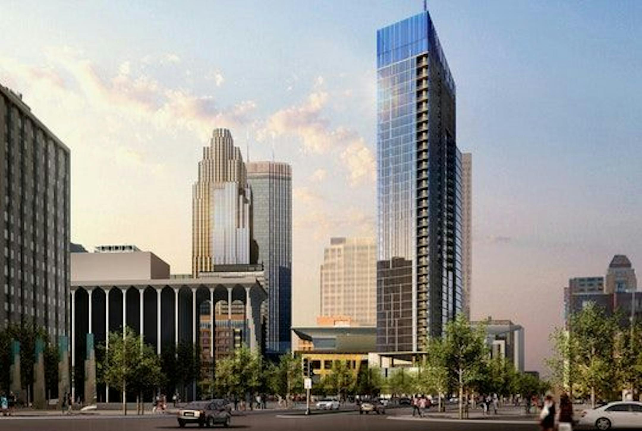 Construction of the stymied skyscraper to be built on the Nicollet Hotel block has been delayed as developer United Properties, which was awarded exclusive negotiating rights for the property in April of 2015, requested extensions multiple times to finalize plans and secure financing for the $330 million project.