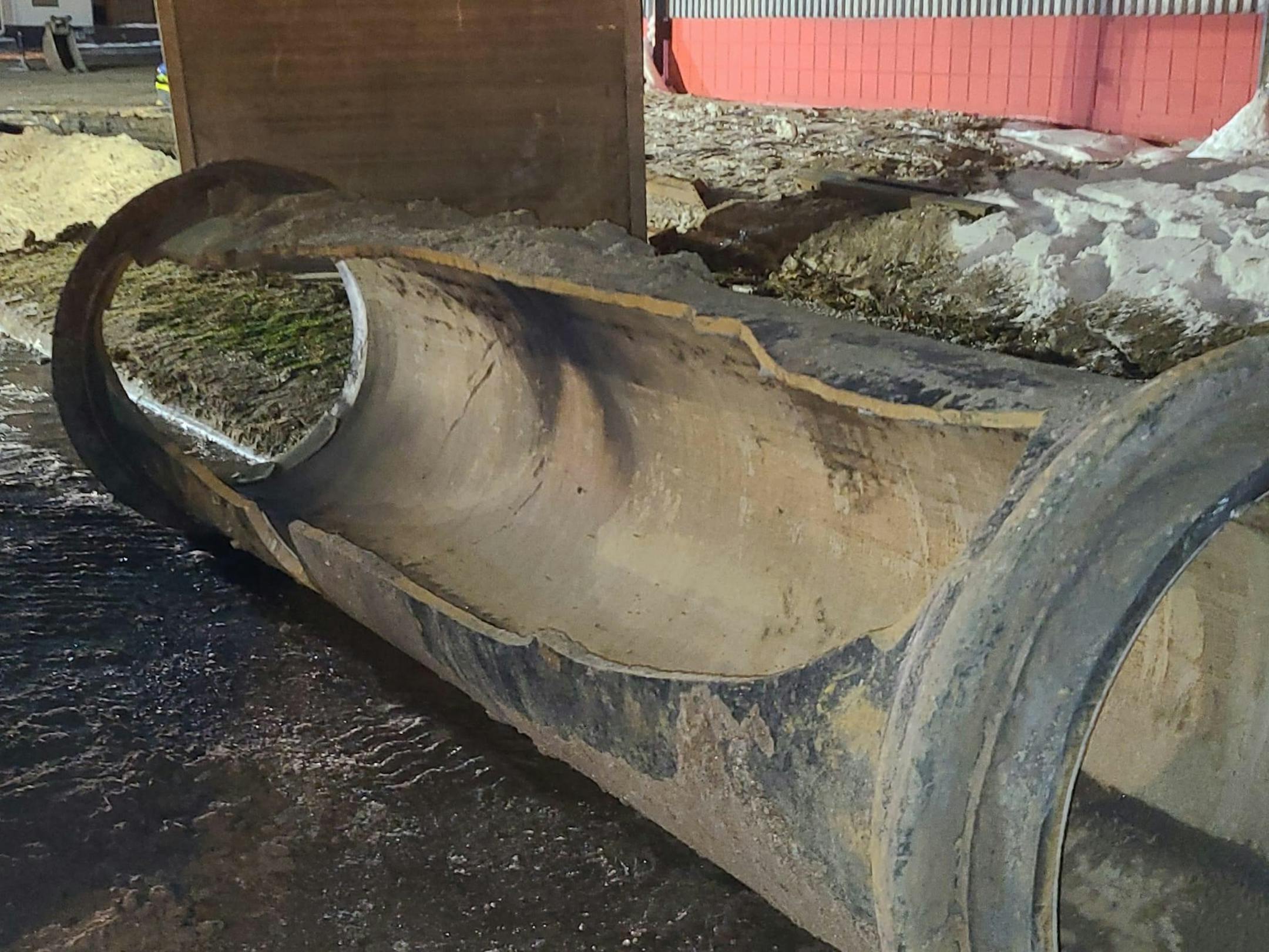 The break occurred about 5:45 p.m. in the 2900 block of 2nd Street N. The affected pipe was a 36-inch-diameter cast iron pipe dating back to 1888.