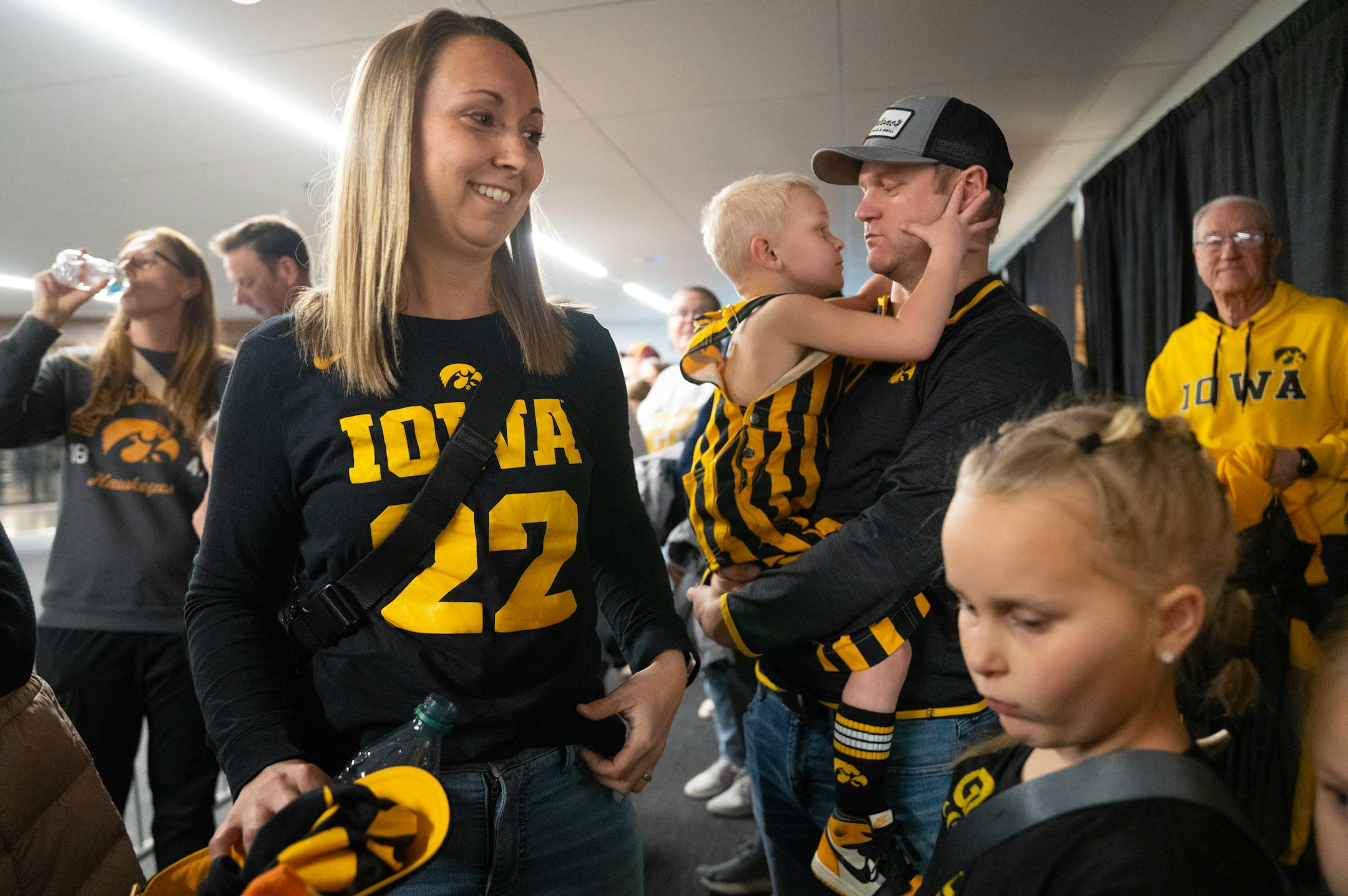 “They were like, ‘Are you serious?’” said Leslie Sefogah of Plymouth, as she waited in line amid a growing group of fans in a downtown skyway along with her 10- and 8-year-old daughters and her own mother — a Hawkeyes season ticket holder — hours ahead of the late afternoon game at Target Center.