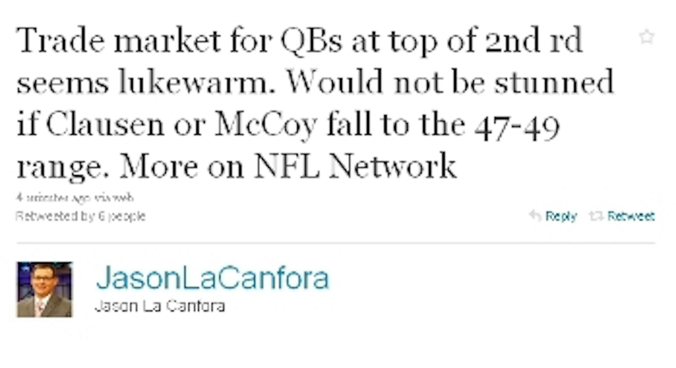 Interesting Tweet a few minutes ago from NFL.com's Jason LaCanfora: