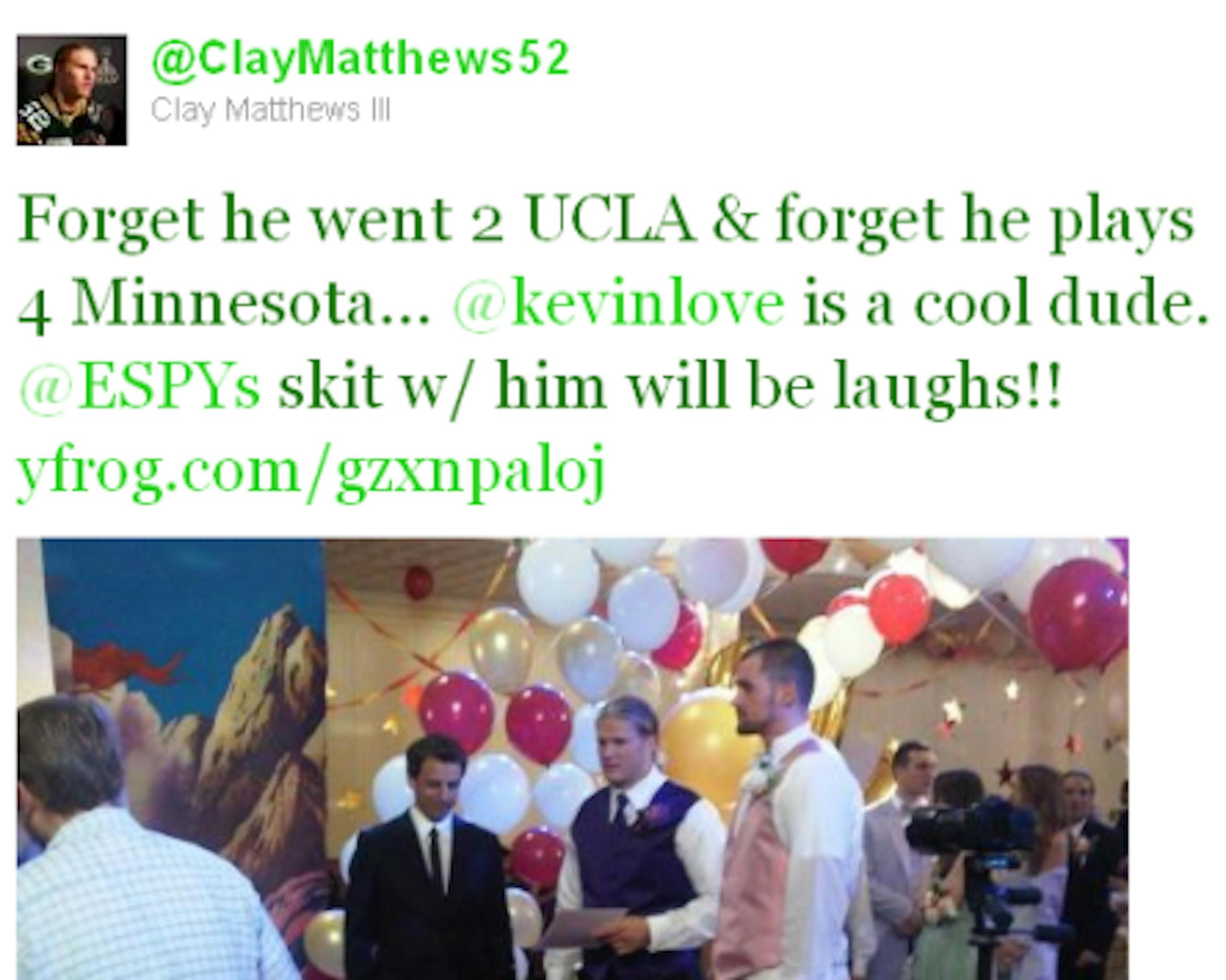 Clay Matthews gets the purple vest, Kevin Love gets the pink one