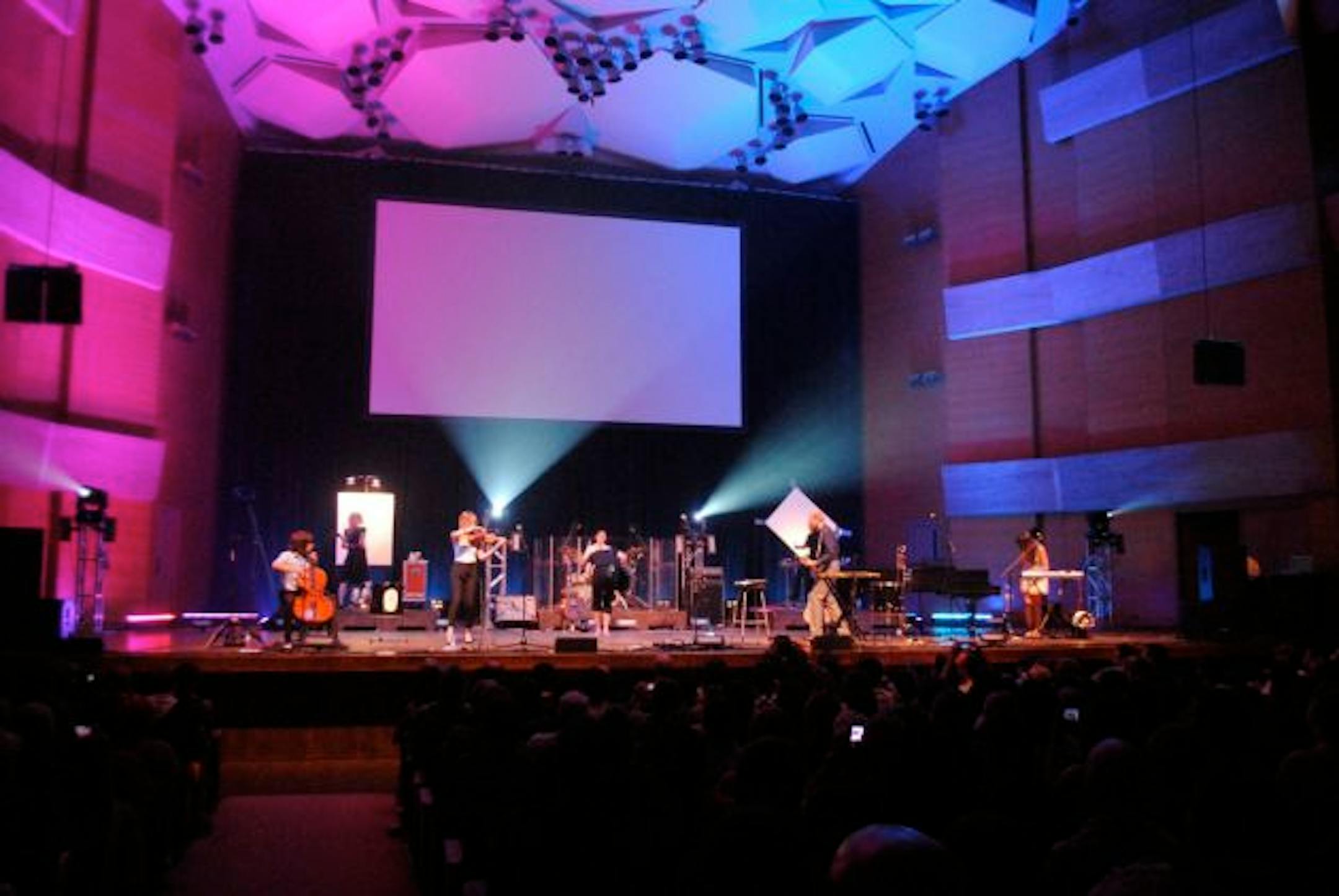 Accompanying songs that ranged in style from percussion-heavy rock numbers to violin-horn duets to piano and acoustic ballads were multimedia presentations matching the beat and subject matter of the songs.