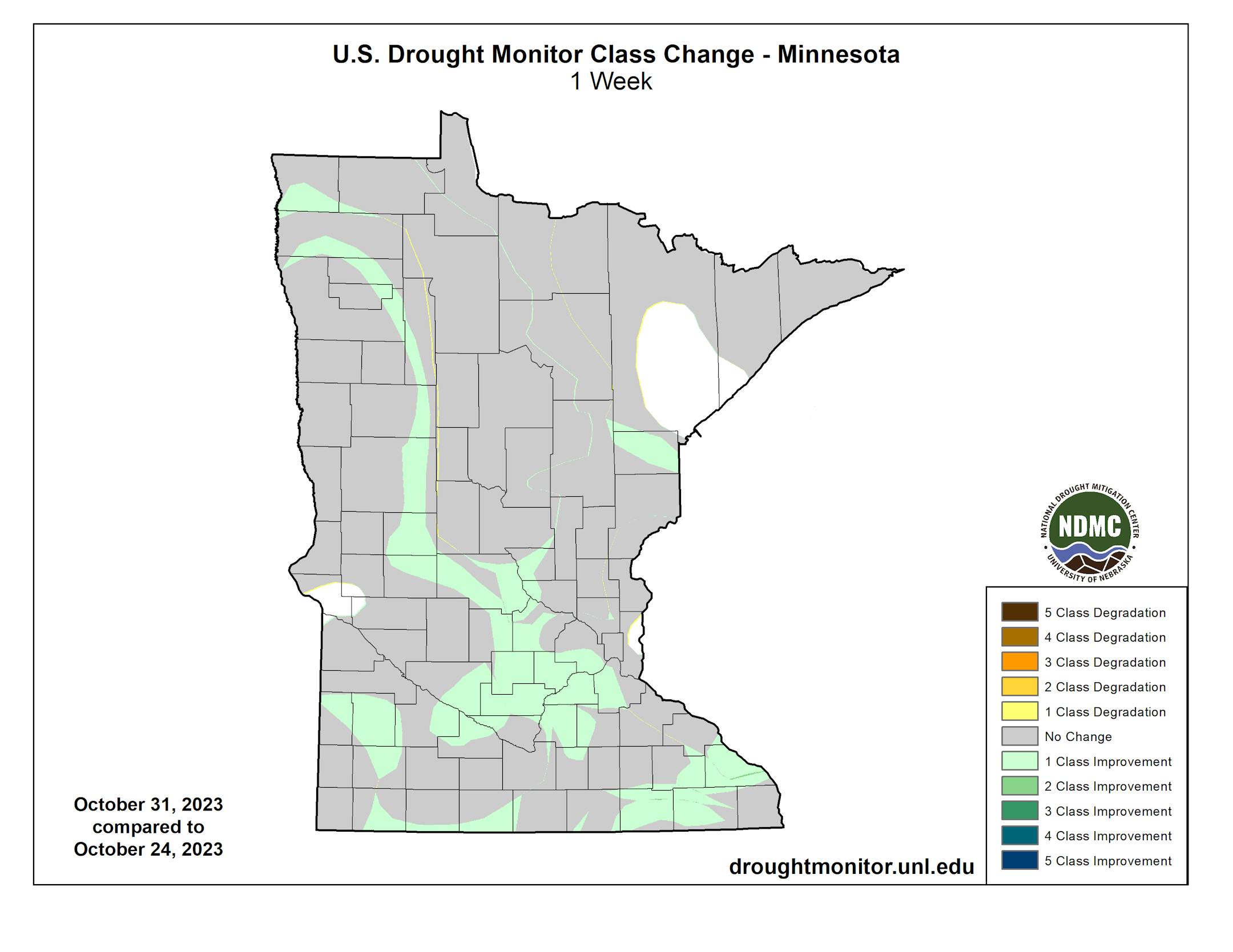 Most of the improvement in the drought situation occurred in southern and western Minnesota.