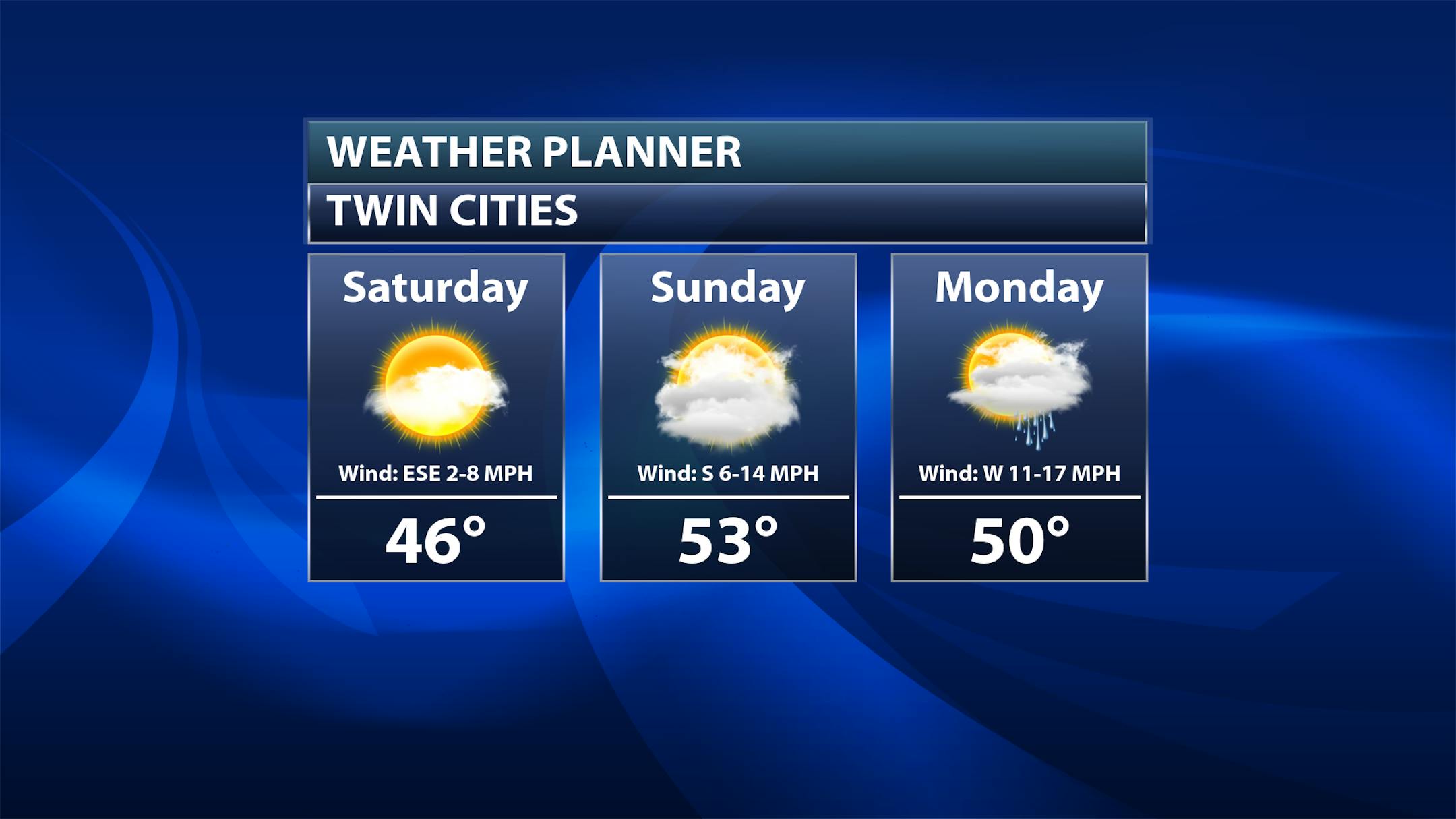 Sunday: A mainly cloudy day is expected. I can't rule out an isolated shower in the metro, but most of the rain during the daytime hours will be up across northern Minnesota (particularly Lake Mille Lacs northward). The best rain chance in the metro will move in for Sunday Night. Highs will be in the low to mid-50s.