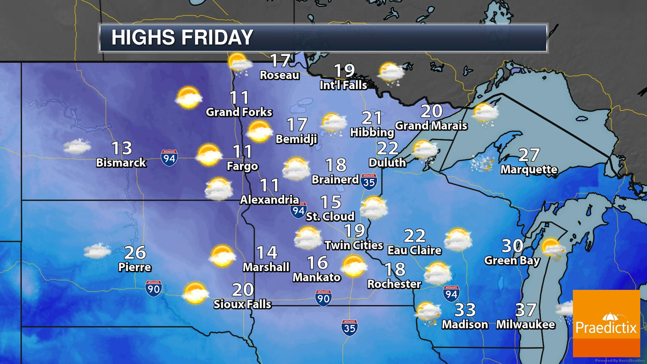 Cloudy & Chilly With Northern Minnesota Snow Friday