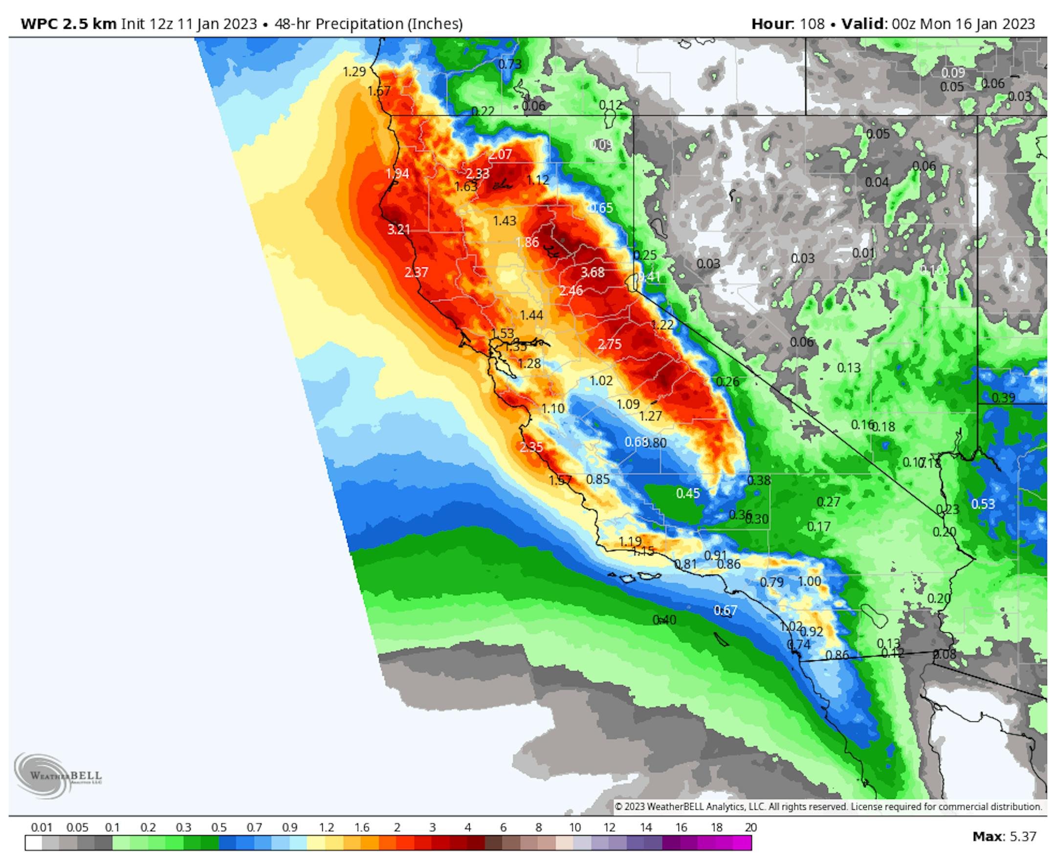 Graphic above shows total precipitation - some of this could have fallen as snow.