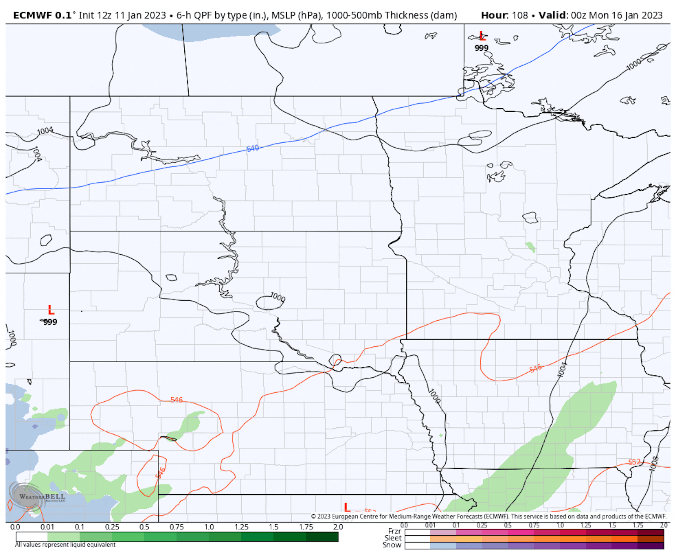 For those hoping to get out and recreate in all the snow out there on the ground (13" at MSP as of Noon Wednesday), it'll be a quiet weekend to do so. Friday will be the sunniest of the days with highs only in the low 20s. We'll climb to the low 30s for Saturday with partly sunny skies. Temperatures will be even warmer on Sunday - reaching the mid-30s - with cloudy skies. I don't really think there will be that much of a chance of precipitation on Sunday - if there's a chance, it's more Sunday Night into Monday, and even then I think we'll just get clipped by the north side of the system with the bulk of it staying south.