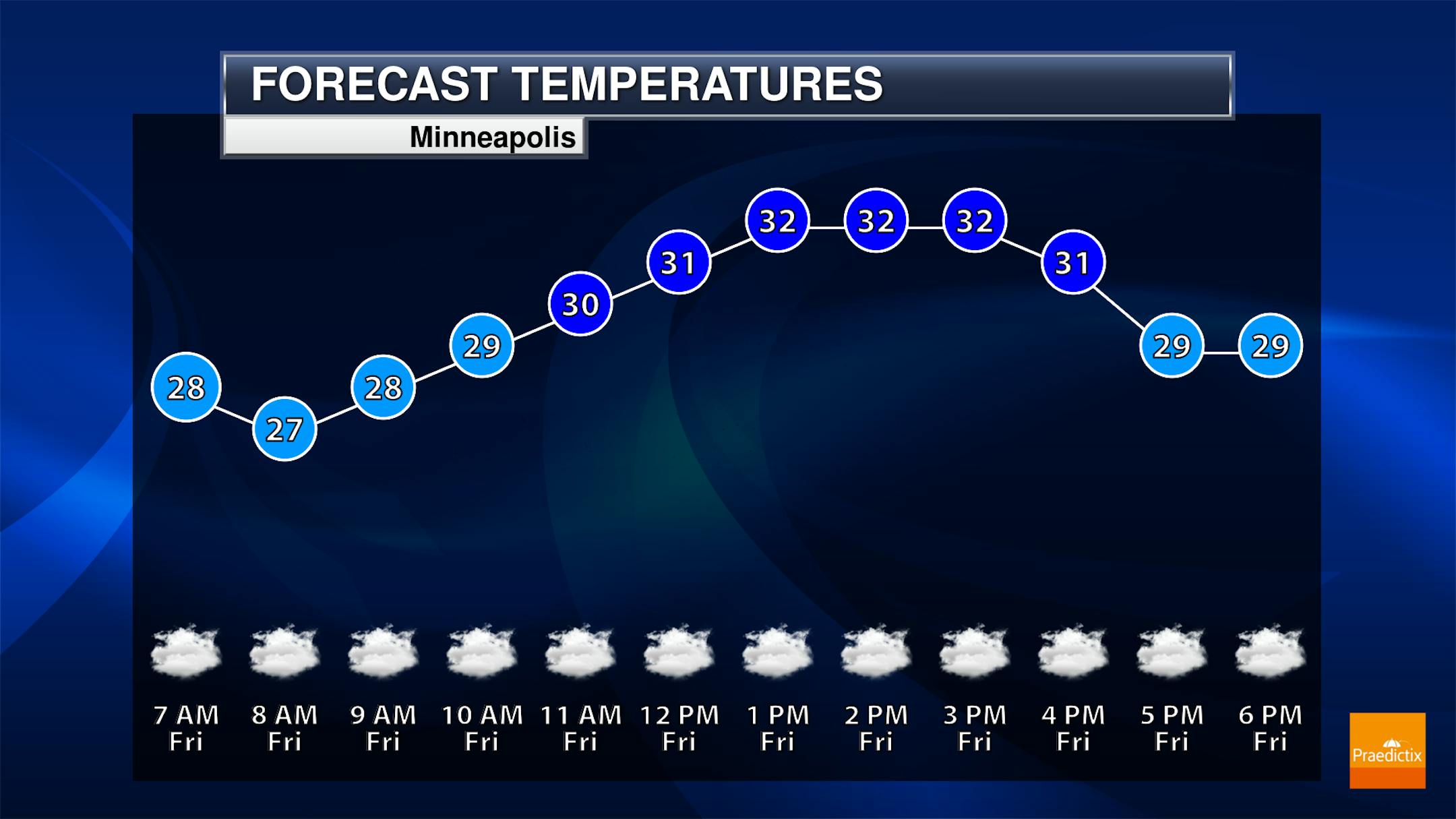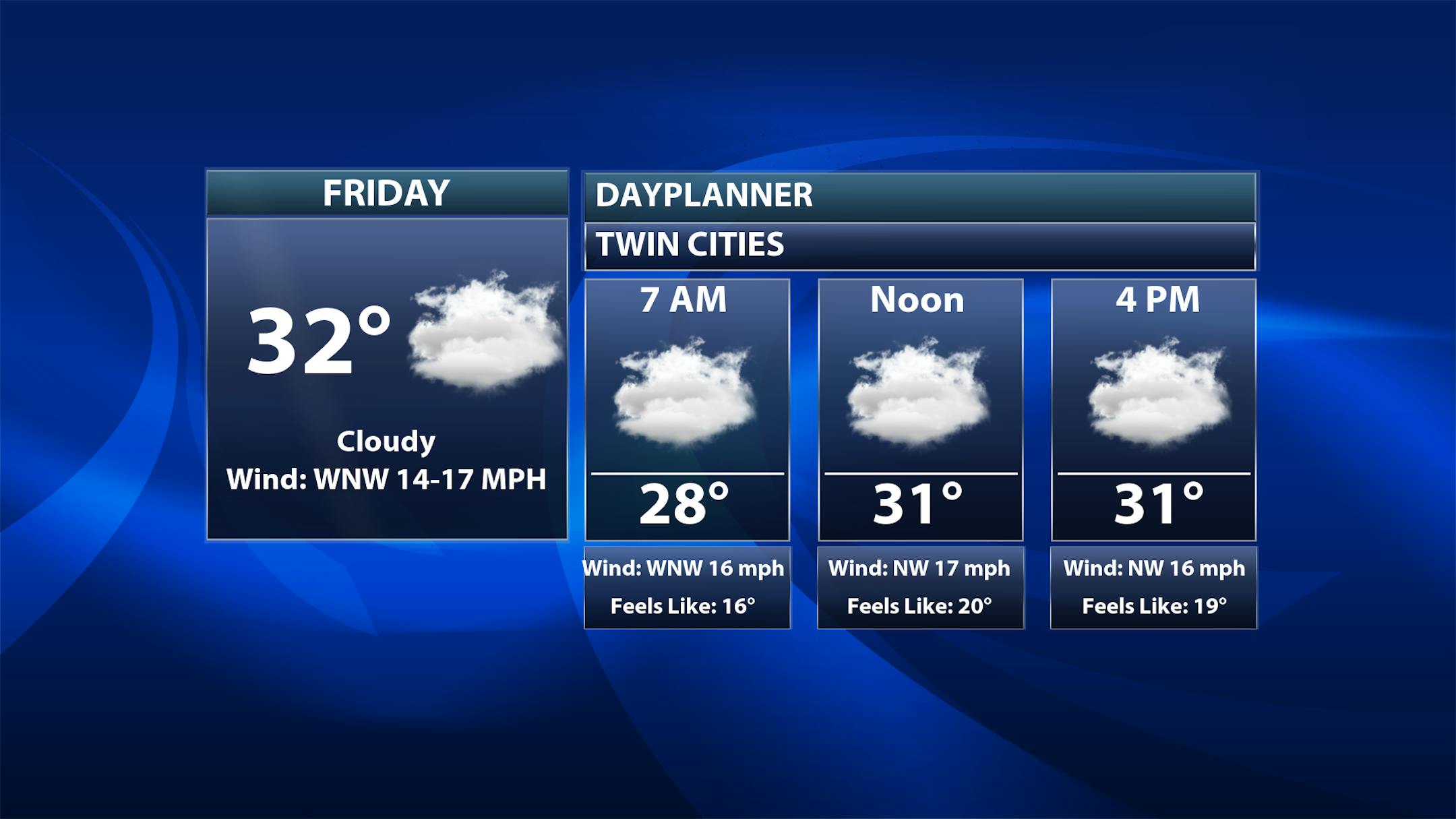 Well... winter is now here, apparently. Temperatures will remain fairly steady in the upper 20s and low 30s as we head through Veterans Day here in the metro under lots of cloud cover. I do believe some wrap-around flurries or snow showers will be possible during the day as the system that has been impacting us departs - however unless you are up north, it likely won't accumulate to much if anything. Friday will also be quite breezy, with west-northwest winds sustained around 15 mph but gusting as high as 30 mph.
